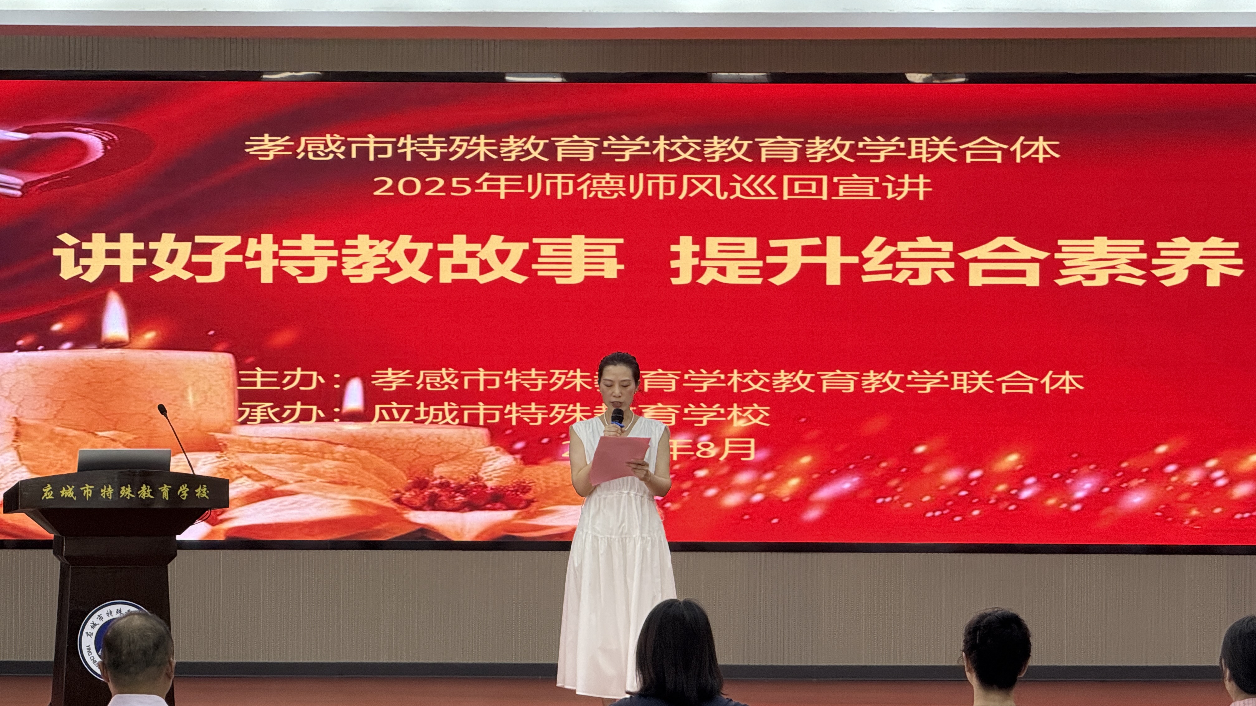 近日,为充分发挥教联体的示范引领作用,深化学校管理、教育科研与教学改革,全面提升特殊教育教师队伍的综合素质与师德修养,孝感市特殊教育学校教联体在应城市特殊教育学校举办以“讲好特教故事,提升综合素养”为主题的师德师风宣讲活动。