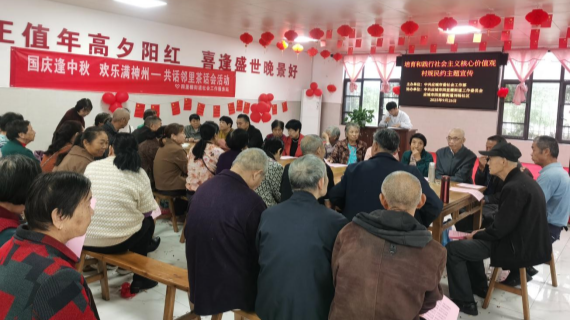 中秋茶话会将氛围推向高潮。社区工作人员与居民们围坐一起,吃月饼、水果,喝热茶,分享中秋习俗与生活趣事,感受“社区大家庭”的关怀与温暖。