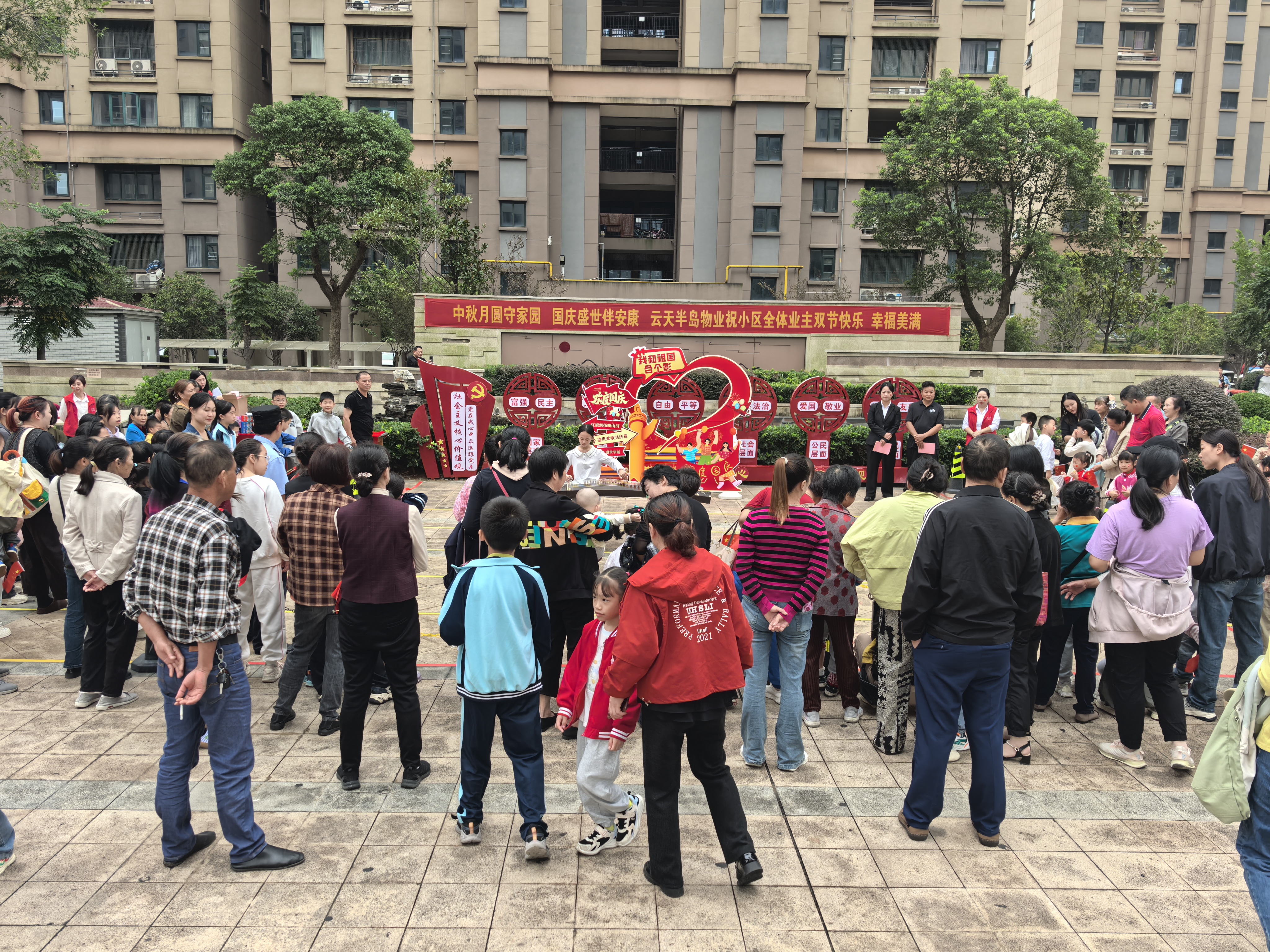 9月27日上午,应城市城中街道碾屋社区携手云天半岛物业服务中心,在小区广场共同举办“庆国庆·迎中秋,邻里相聚话团圆”主题活动,活动吸引数百名居民积极参与。