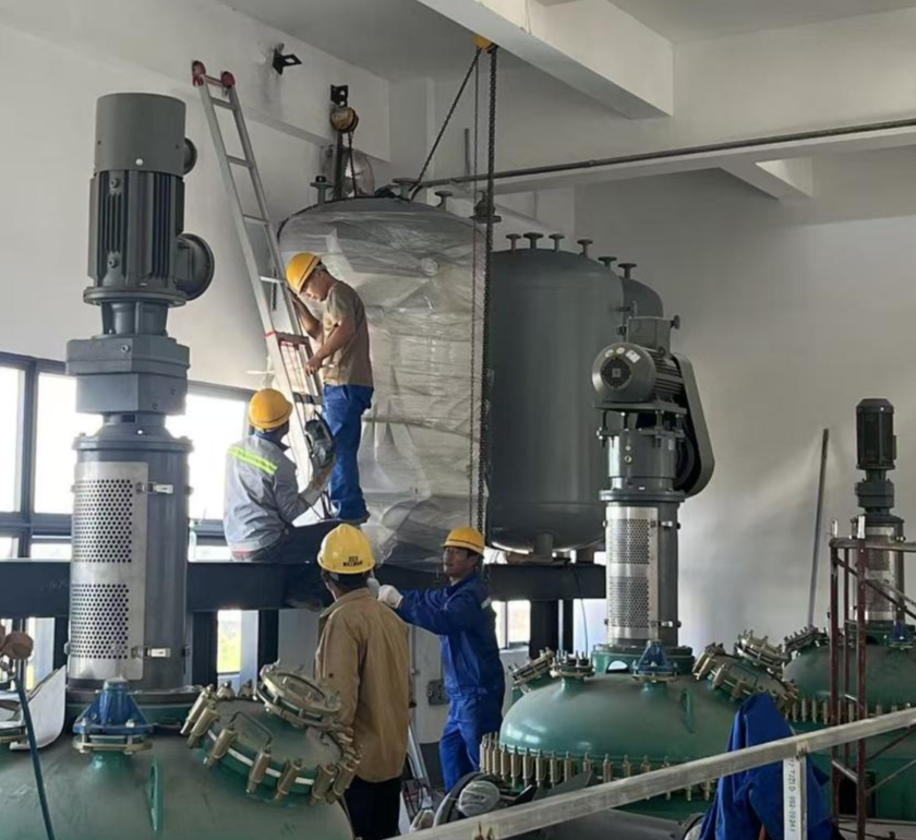 近日,在应城市长江埠街道赛孚工业园区内,湖北世科药业有限公司项目建设正在进行设备安装。