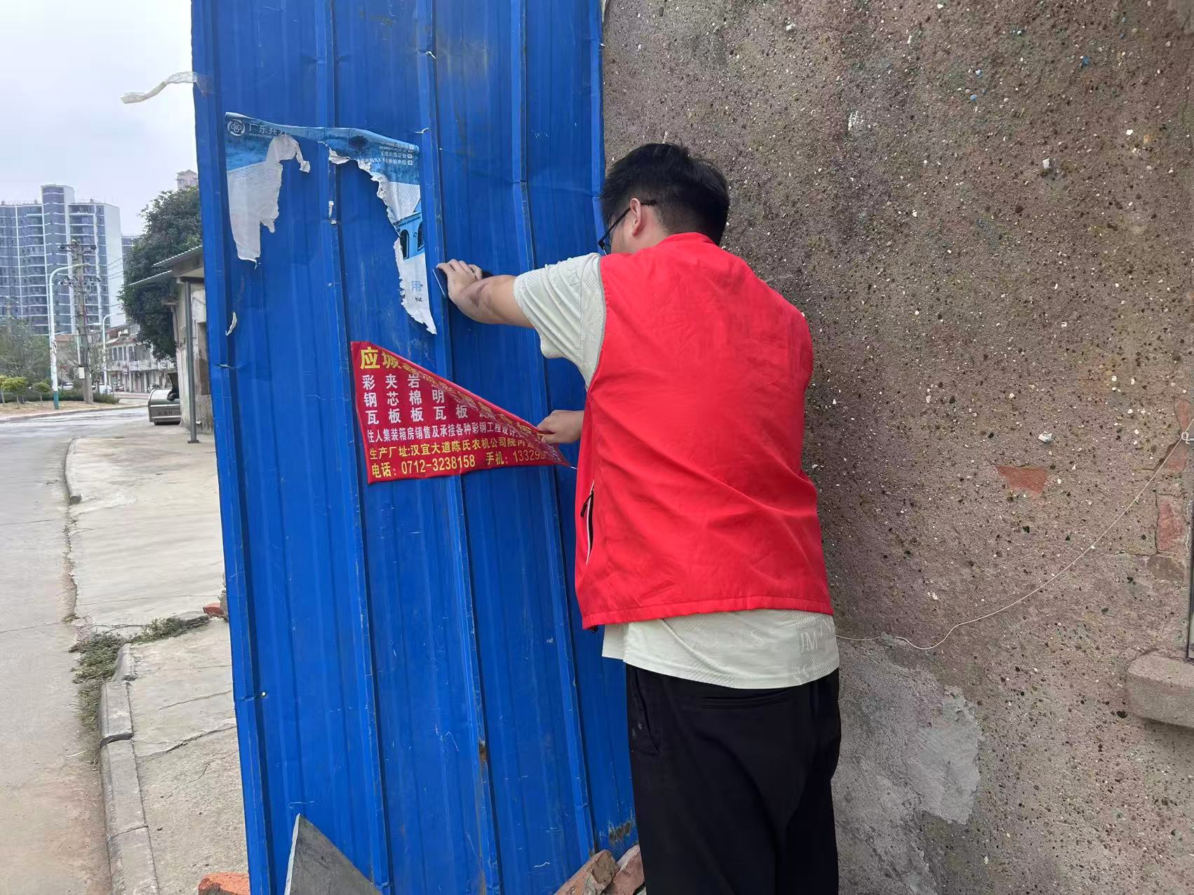 为推进全国文明城市创建工作,营造整洁、美观、有序社区环境,近日,应城市城中街道星星社区组织社区工作人员开展清除城市“牛皮癣”专项活动。
