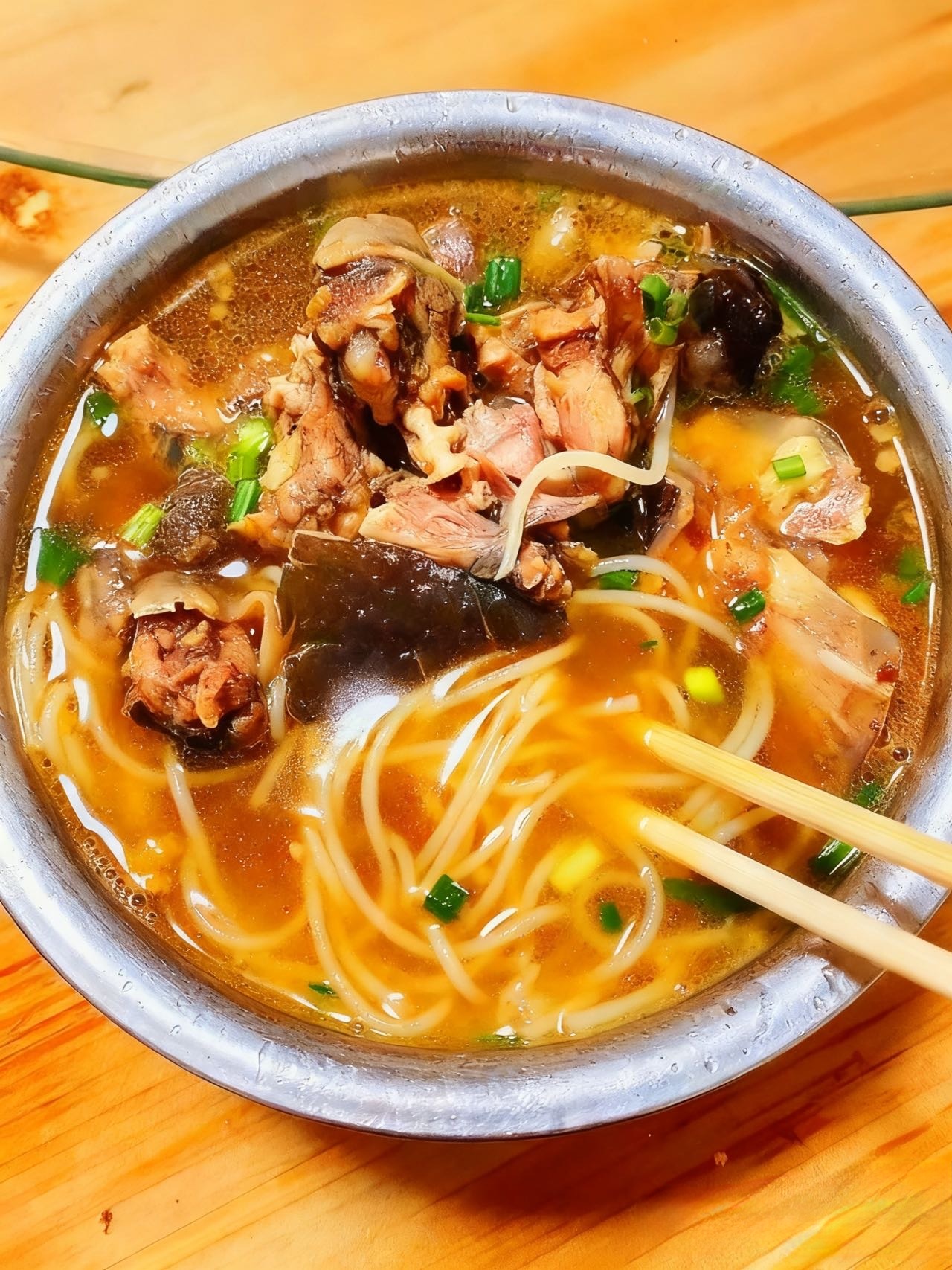 应城甲鱼粉的鲜,藏在温火慢炖的甲鱼汤汁里。慢炖甲鱼与大骨四小时,熬出奶白色浓汤,撒一勺应城粗盐提鲜,口感醇厚不腻。本地手工制作的米粉浸在汤中,吸足汤汁后变得爽滑筋道,碗底的甲鱼肉炖得软烂脱骨,嗦粉时连汤带肉一起入口,暖意从舌尖漫至胃里,驱散清晨的微凉。