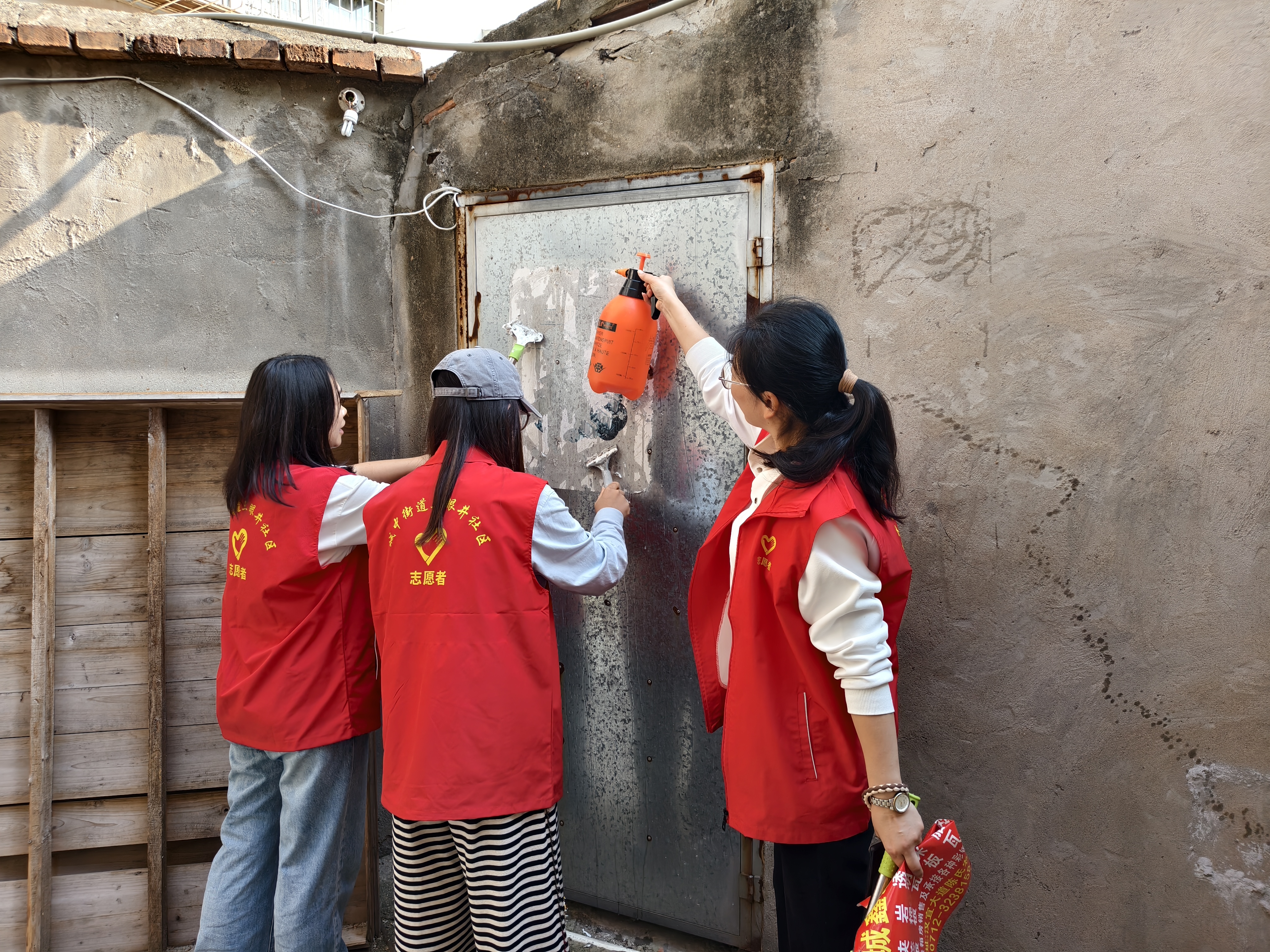 行动中,志愿者们分工协作,对纸质小广告采用“浸湿-铲除-擦拭”三步法清理,并向居民发放文明创建宣传页,普及乱贴小广告危害,倡导大家共同抵制不文明行为,形成“志愿带头、群众参与”良好氛围。