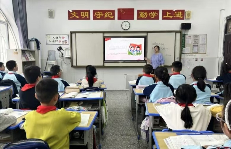 聆听故事、开展实践……少先队员在“讲述身边的爱国故事”主题班会、“我为祖国送祝福”留言活动等沉浸式体验活动中感悟爱国主义精神,立志成为担当民族复兴大任的时代新人。