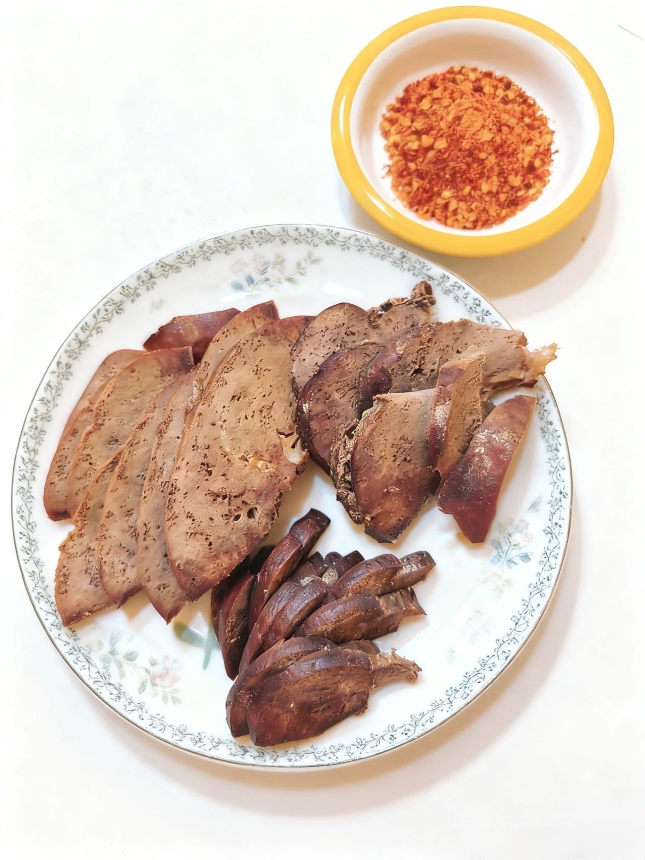 应城人把盐玩得太溜!新鲜猪肝切厚片,用花椒盐腌去腥味,再埋进热盐里焗熟,热力锁住汁水,咬开内里粉嫩,带着淡淡的花椒香与盐的鲜醇,一点不腥腻。