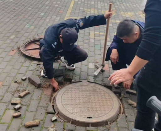发现隐患后,周陈村立即启动应急处置,驻村第一书记迅速协调资源,紧急调配合规新井盖。10月17日,新井盖运抵现场,村委会联合物业公司冒雨作业,设置安全警示、移除旧井盖、精准安装加固新井盖,一气呵成消除隐患,赢得村民一致好评。