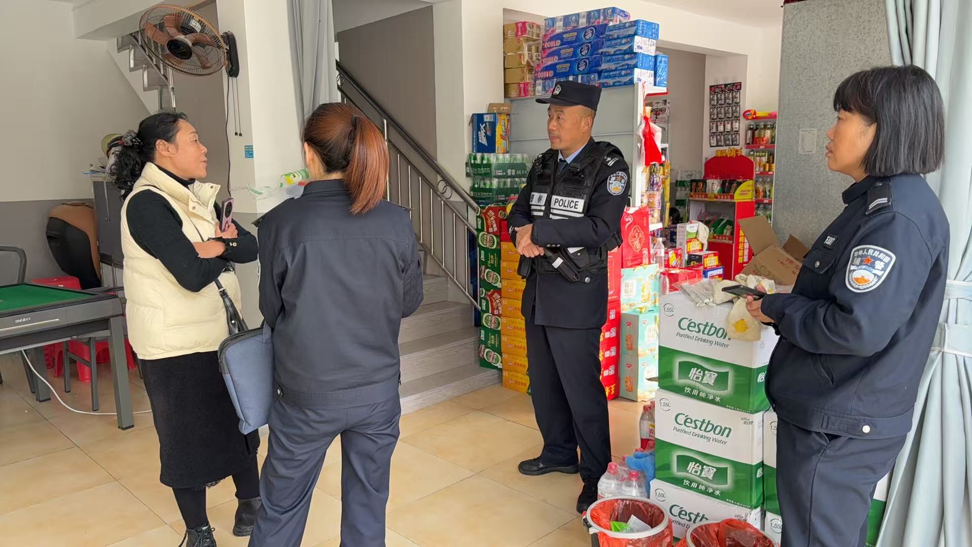 民警巡查商户营业执照,核对登记信息,确保门店依法依规经营。对违规住人门店,民警耐心向店主讲解消防风险、人员疏散困难等安全隐患,要求立即搬离居住人员,为社区营造安全有序经营环境。