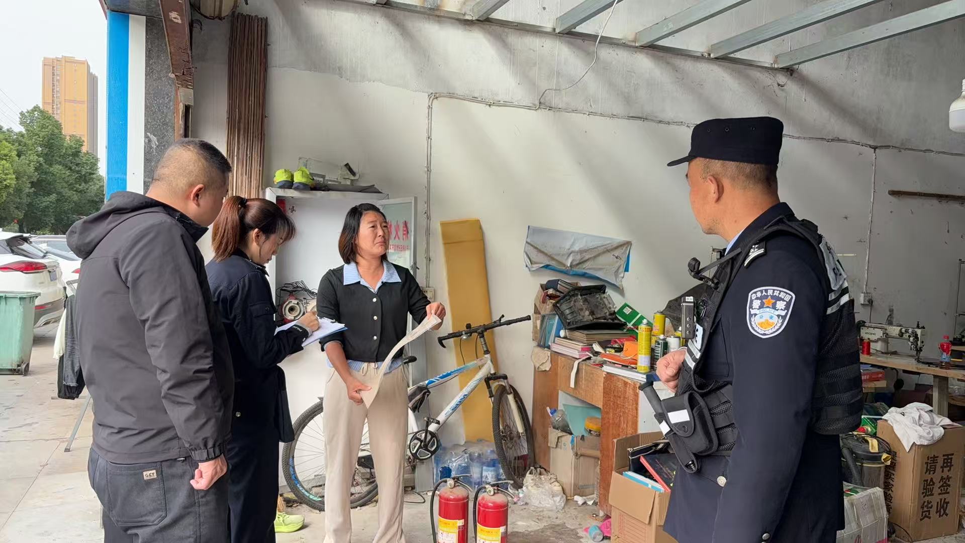 10月23日,应城市城中街道长湖社区联合驻社区民警到辖区开展门店专项检查。