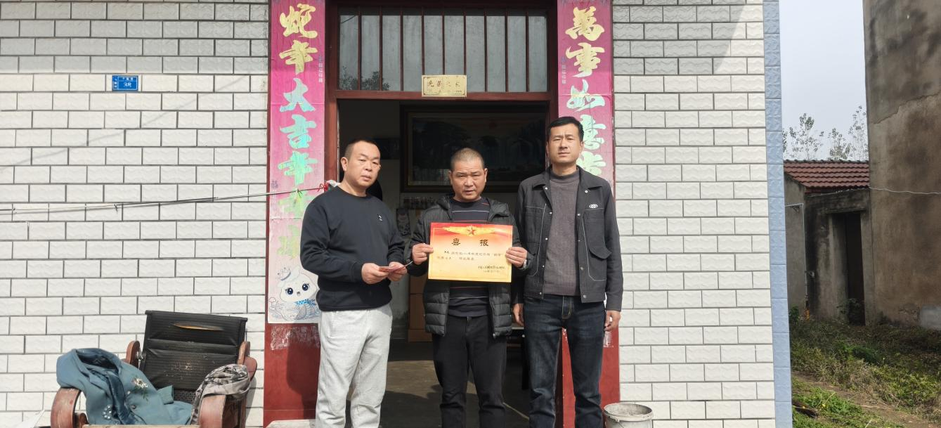 近日,应城城北街道退役军人服务站工作人员走进辖区内3名在部队立功受奖的现役军人家中,送去立功喜报和慰问。