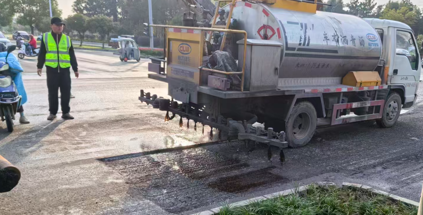 施工过程采用多台专业设备协同作业,沥青洒布车将乳化沥青均匀喷洒在待维修的路面上,为后续沥青层粘合筑牢基础,确保新铺路面与原有路面紧密结合,提升整体强度与耐久性。接着用摊铺机把新沥青料铺平整,最后用压路机来回碾压让路面变得紧实。