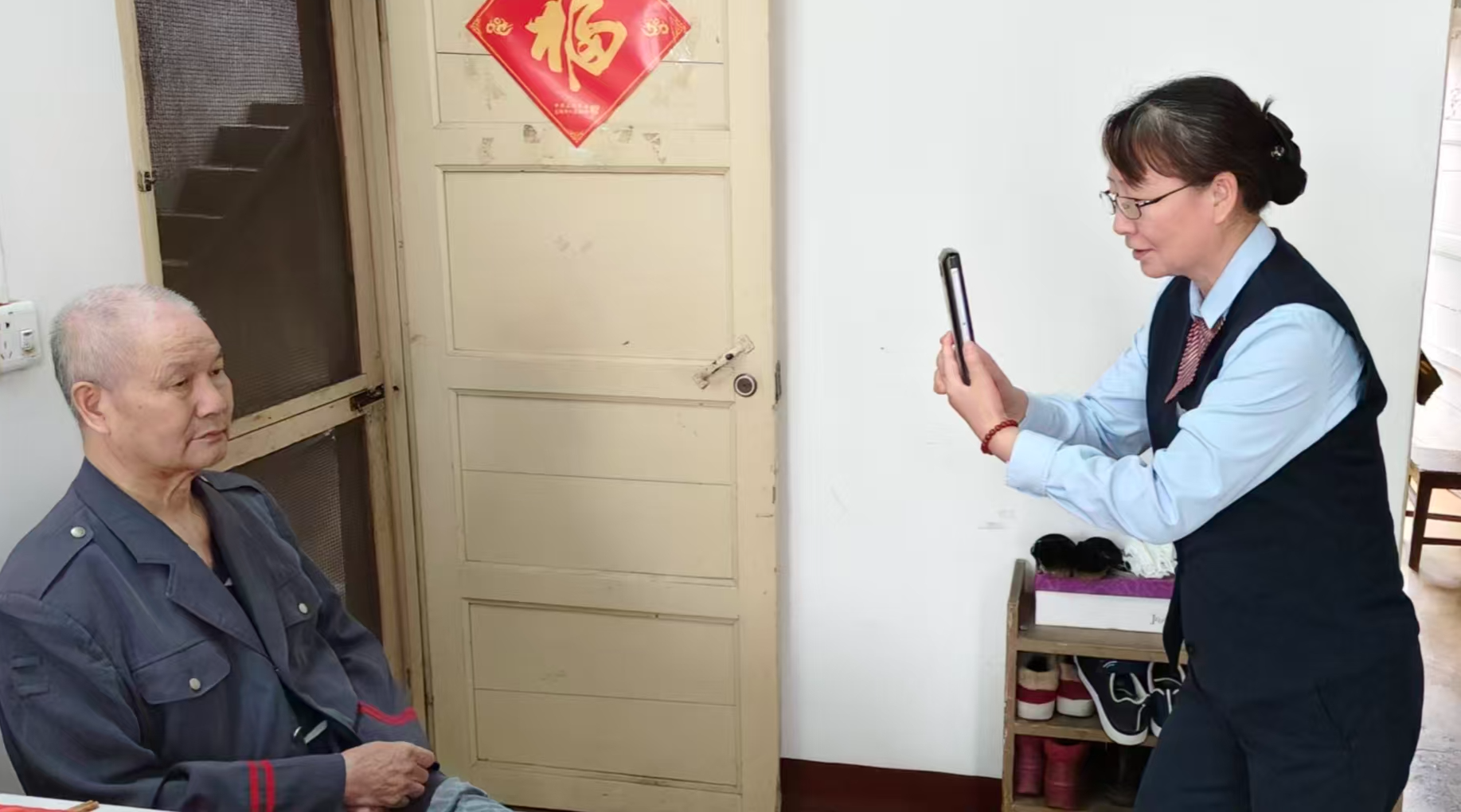 走访期间,工作人员携带认证设备、身份证读卡器等仪器,细致耐心地为行动不便退役军人进行信息核对、人脸采集等认证操作,现场解读有关政策与后续服务内容。