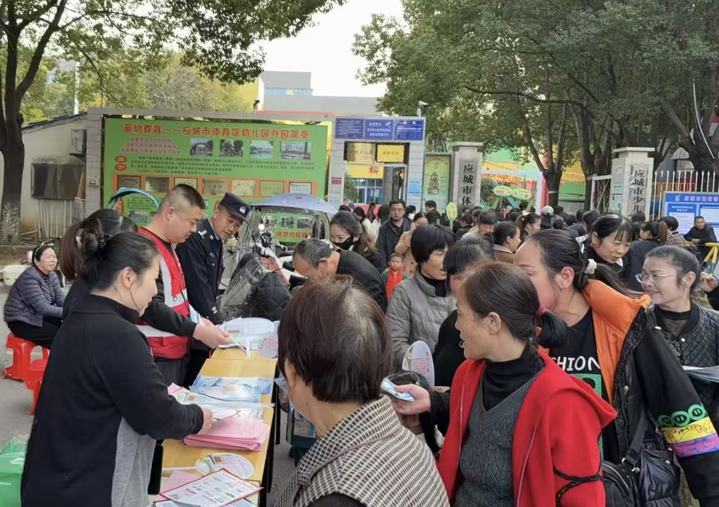 11月5日,应城市城中街道长湖社区联合驻社区民警、应城市人力资源和社会保障局下沉单位志愿者等,在该市体育馆开展消防安全、禁毒、反电诈知识宣传。