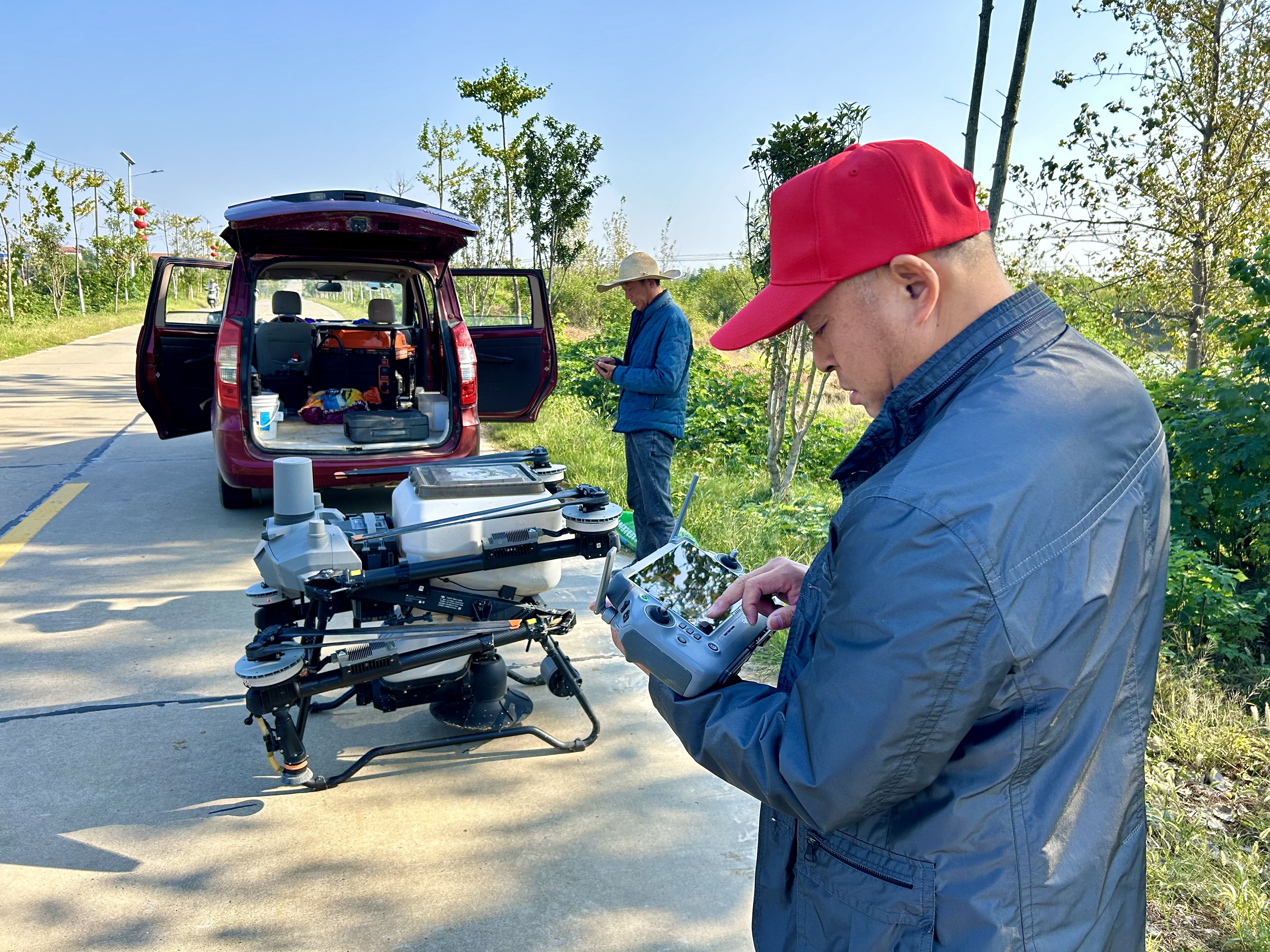 “启动!”随着无人机操作人员在遥控器上按下指令,无人机缓缓升空,通过定位系统和传感技术,按照设定的飞行高度、速度与播撒密度开展作业。