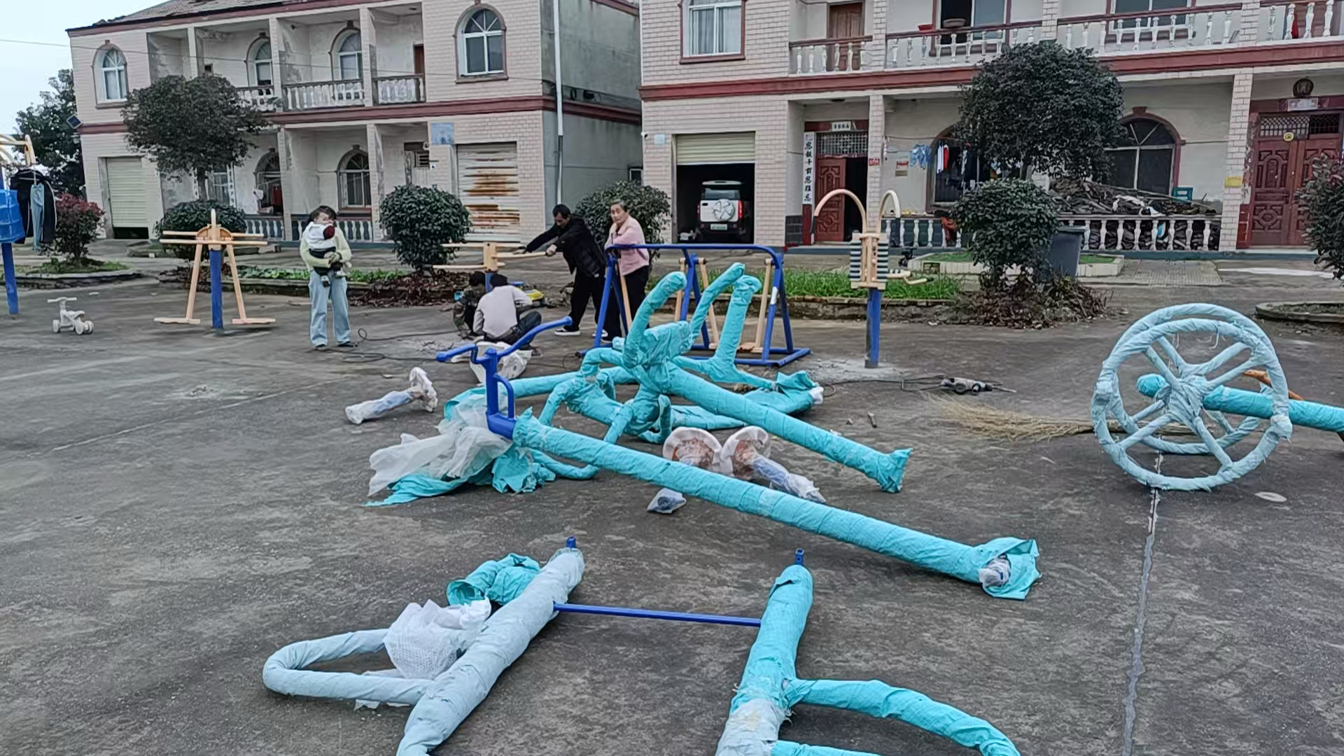 11月9日,应城市陈河镇先锋村中心广场完成一批全新健身器材更换安装工作。