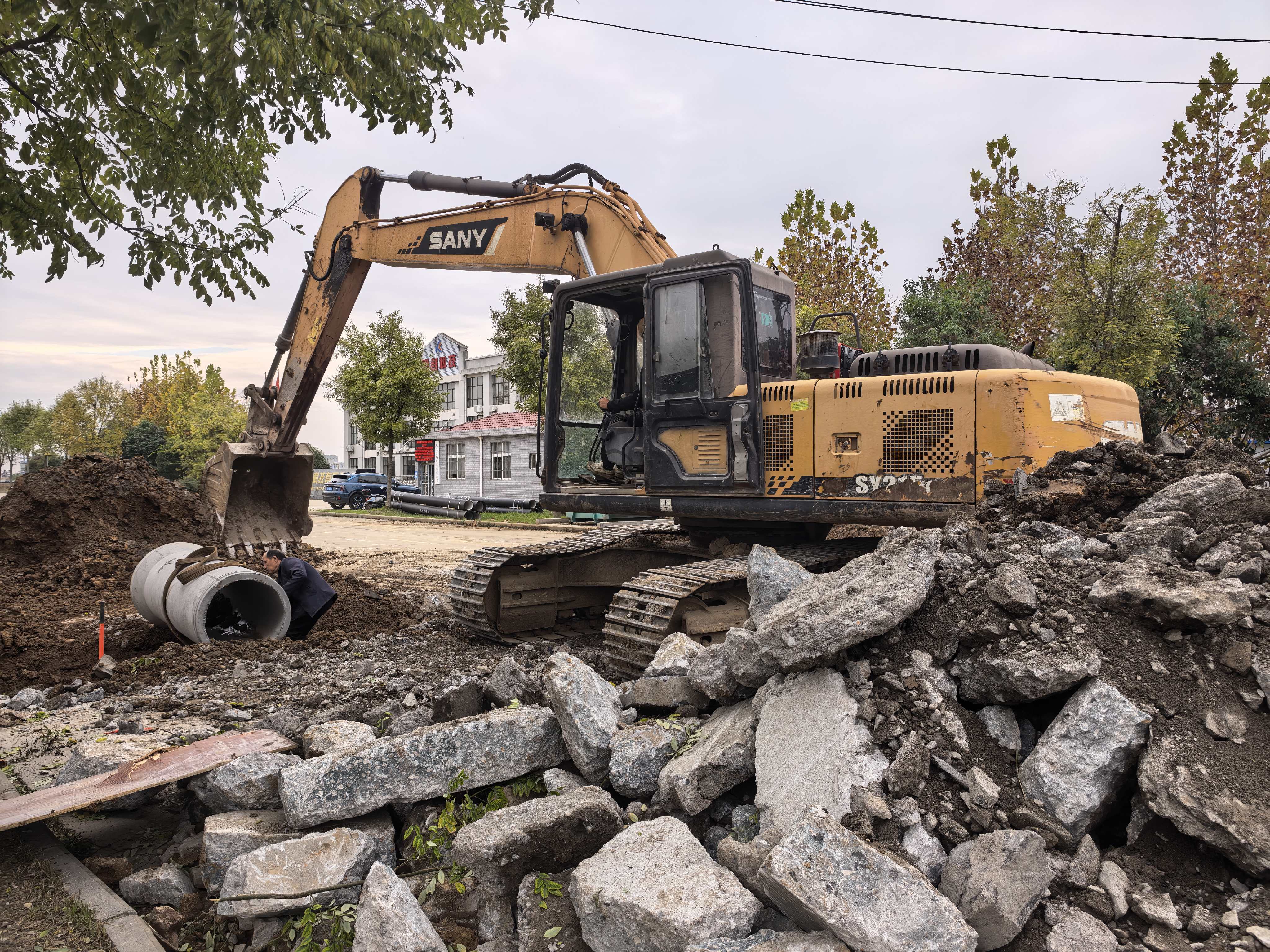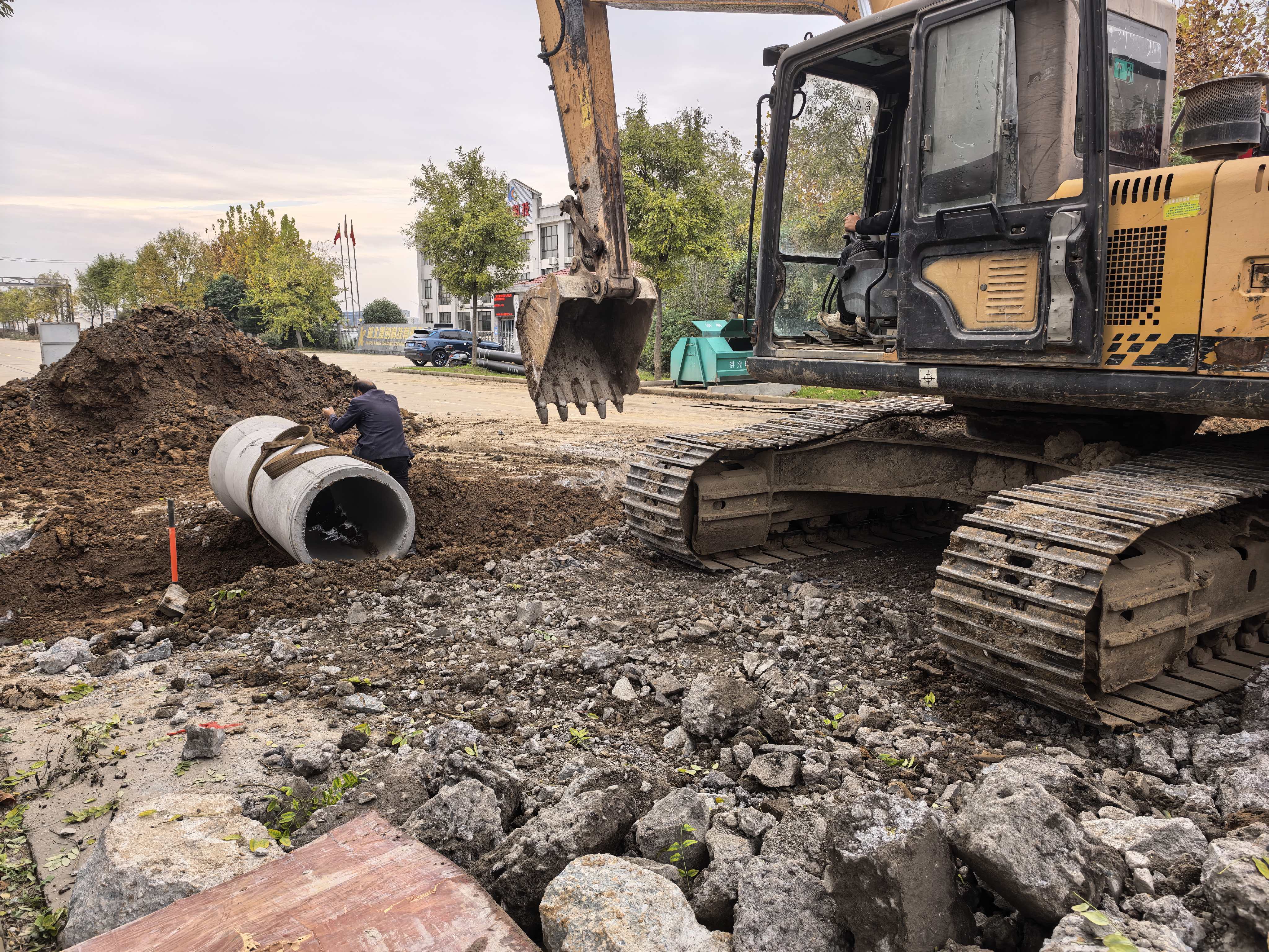 此前,该区域长期依赖自然沟渠排放雨水,遇强降雨时易出现排水不畅、积水内涝等问题,对企业生产和周边居民生活造成影响。