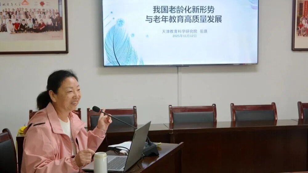 岳瑛顾问观看了应城老年大学专题片《这里的黄花芬外香》,为学校作《我国老龄化新形势与老年教育高质量发展》专题讲座。她从我国老龄化发展的新形式;我国老年教育发展现状及国际老年教育比较;我国老年教育高质量发展及未来五年发展趋势等三个方面进行讲解。