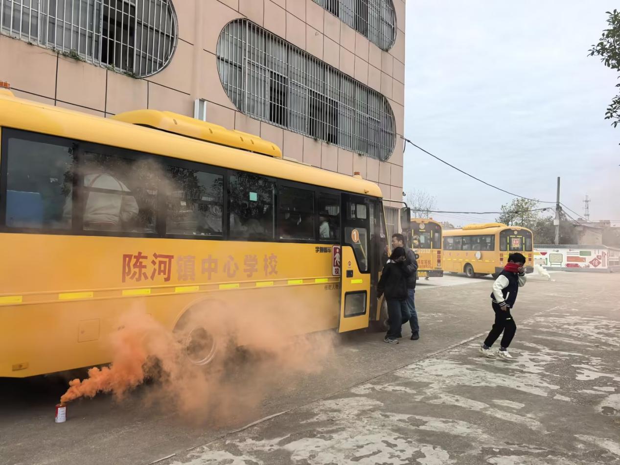 近日,应城市陈河镇中心小学组织全体乘车学生开展校车逃生应急演练,让安全知识融入实战。