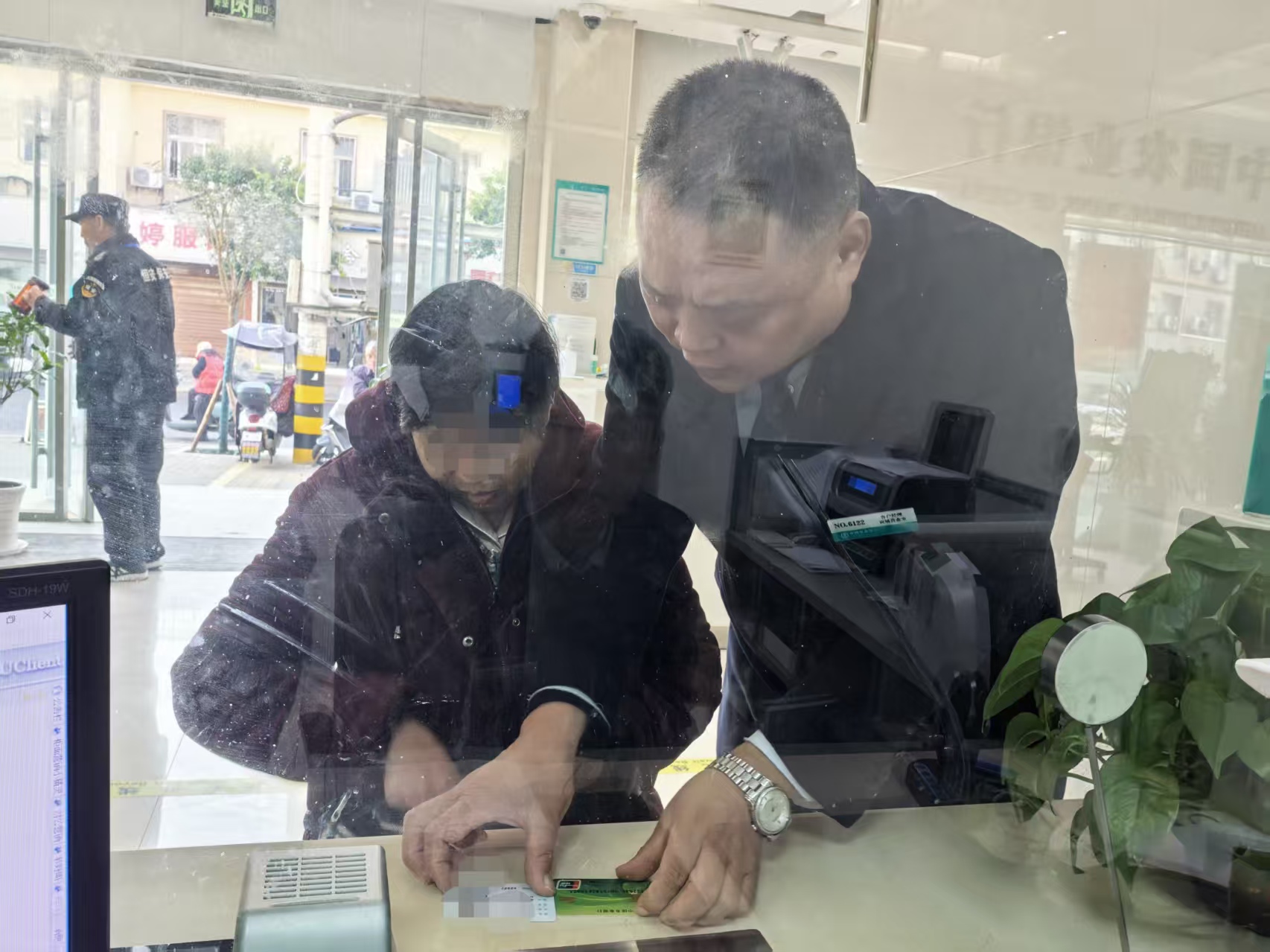 大堂经理刘显见状,立即上前搀扶老人到休息区坐下,递上温水耐心安抚。在得知老人无子女照料、行动不便后,刘经理一边详细告知补办身份相关流程,一边主动联系辖区派出所说明情况,协助老人快速办理了临时身份证明。并指导引导老人完成密码重置、身份核验等手续,全程耐心讲解每一个操作环节,确保老人清晰了解业务流程,成功支取现金,还告知老人今后有任何业务需求可提前联系,网点可提供上门服务。