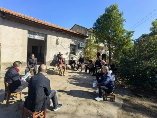 11月19日,应城市杨岭镇龙集村一处农家院落里,村“两委”干部与村民围坐成圈,以屋场院子会形式开展城乡居民养老保险、医疗保险征收宣传。