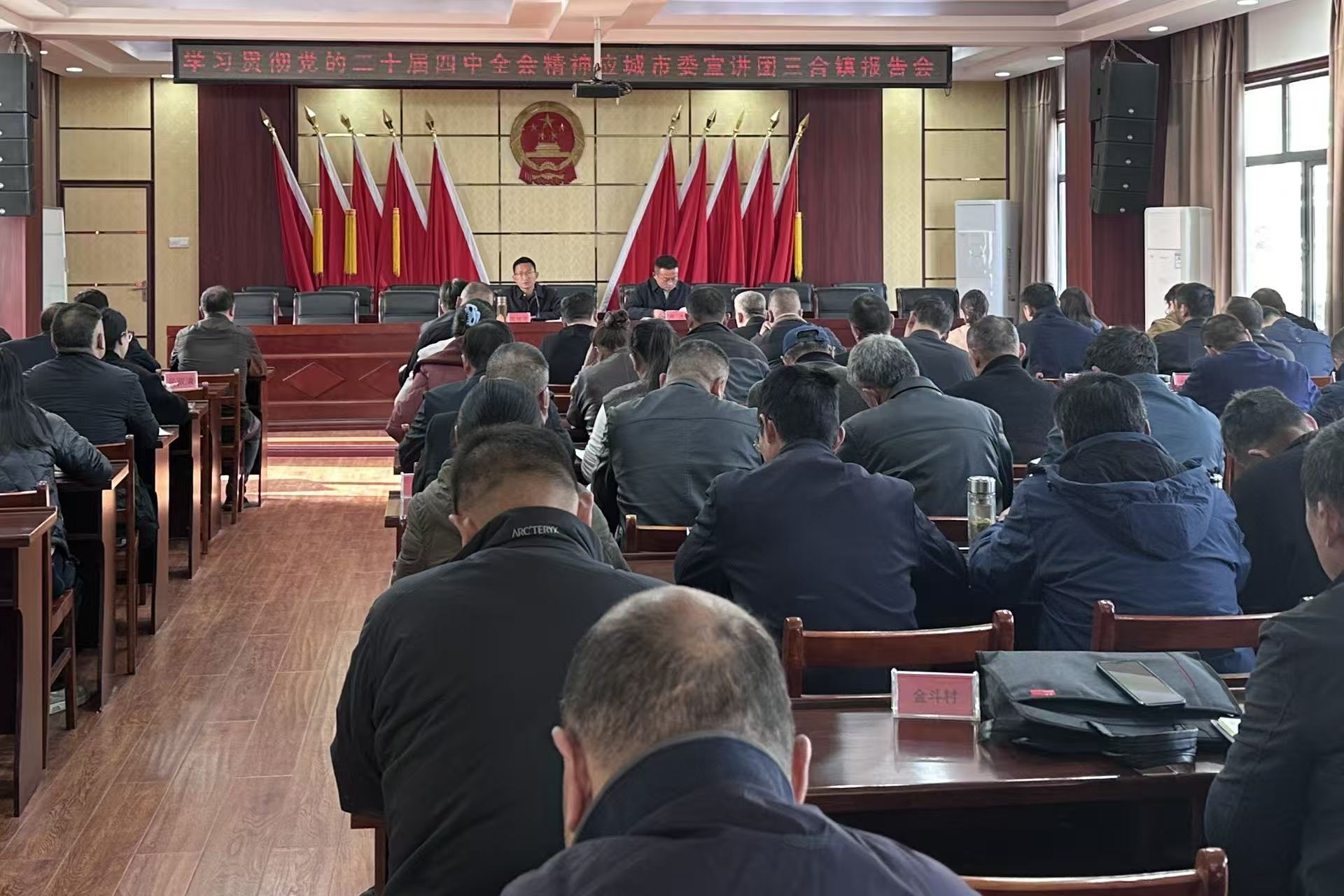 应城市三合镇党委书记作宣讲报告,该镇全体机关干部、各村(社区)支部书记、各镇直单位负责人参加报告会。