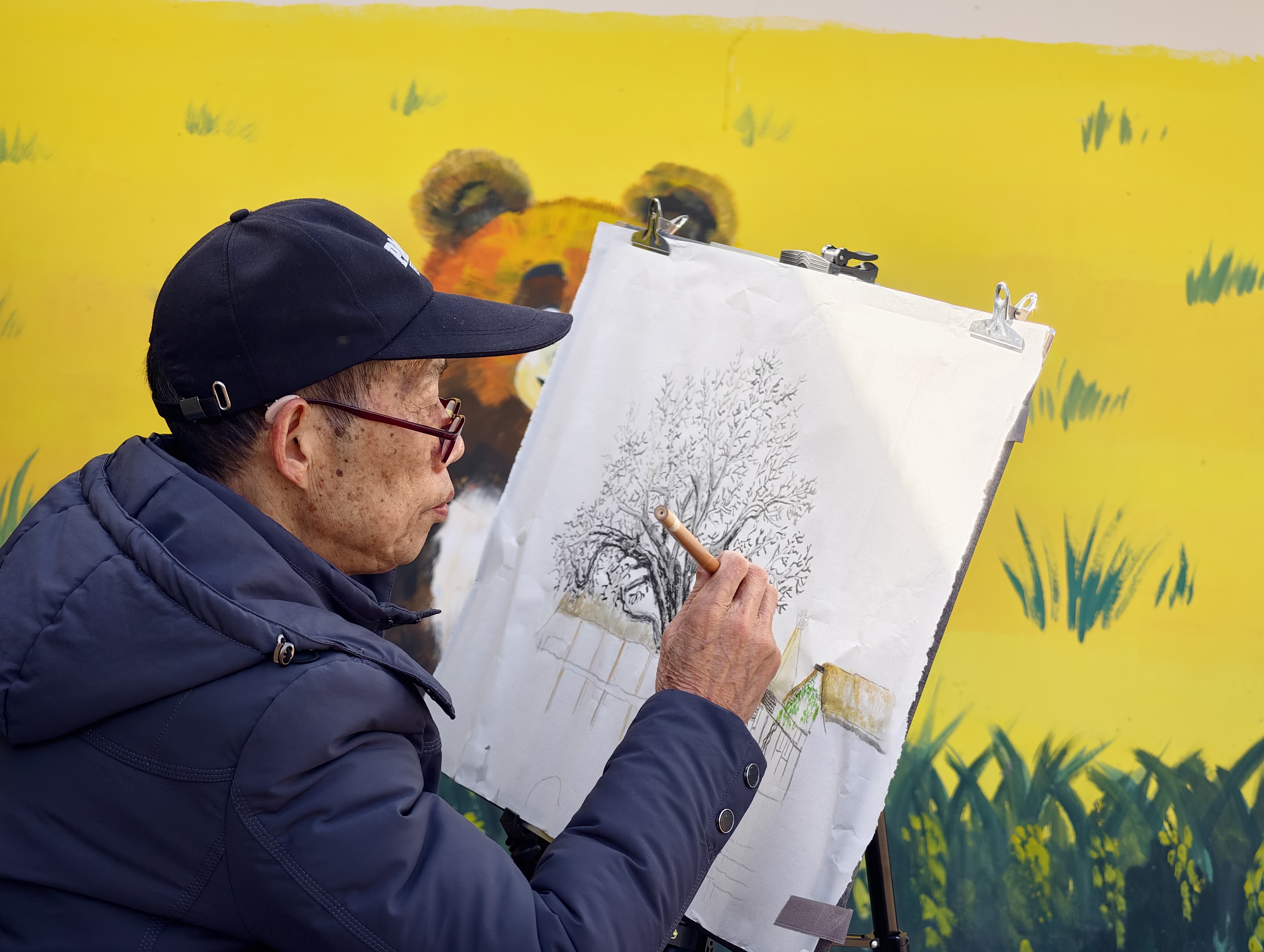 上午9时,写生活动正式拉开帷幕。艺术家们分散在“花间部落”各个角落,寻找心仪创作视角。他们凝神观察,挥毫泼墨,将清新田园风光、独具特色的文旅设施与村民们忙碌而充实的身影一一纳入画中。