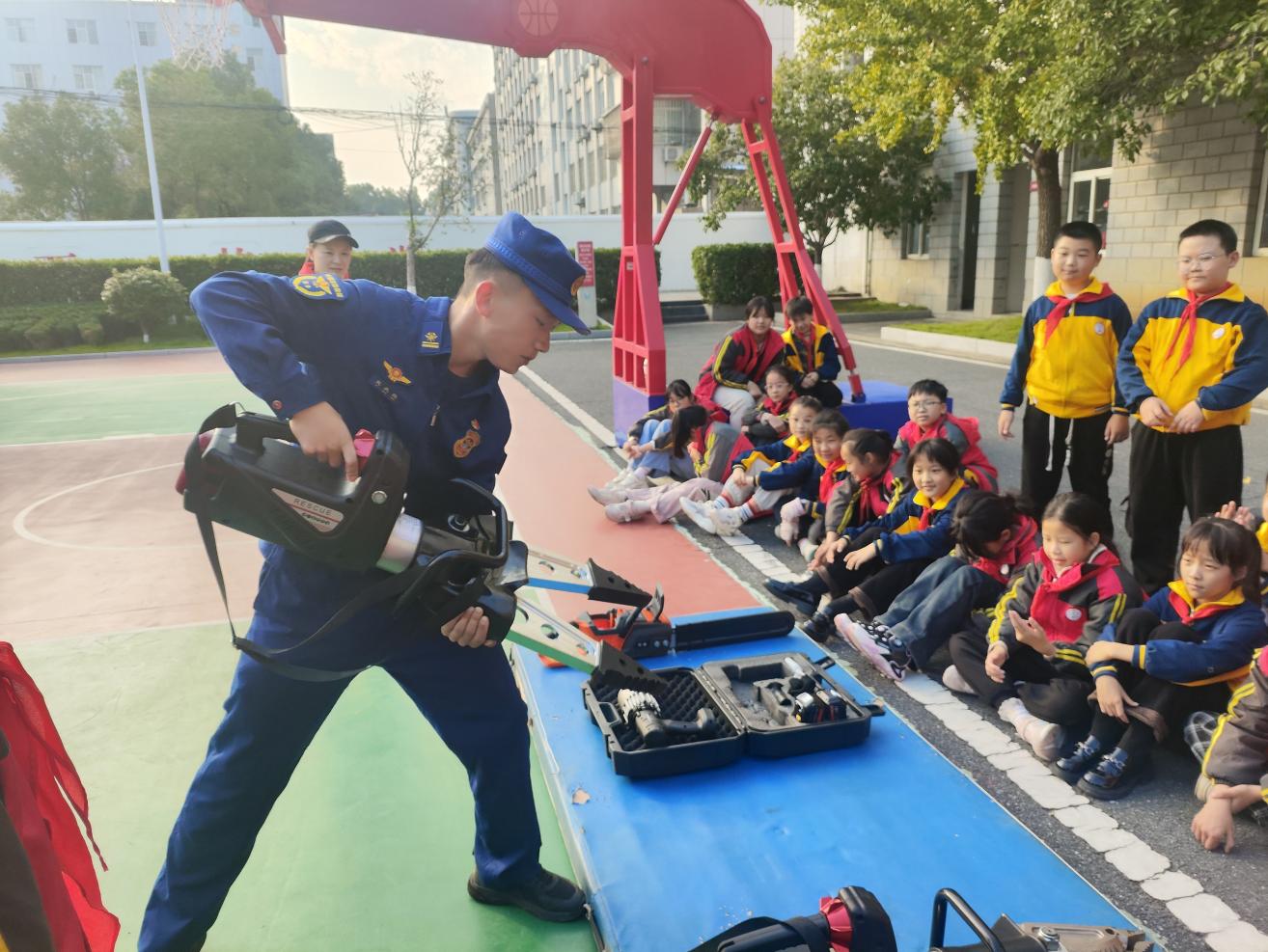 消防员叔叔还叮嘱同学们,装备是用来保护大家的,平时不要随意触碰消防设施,遇到危险要第一时间拨打119。