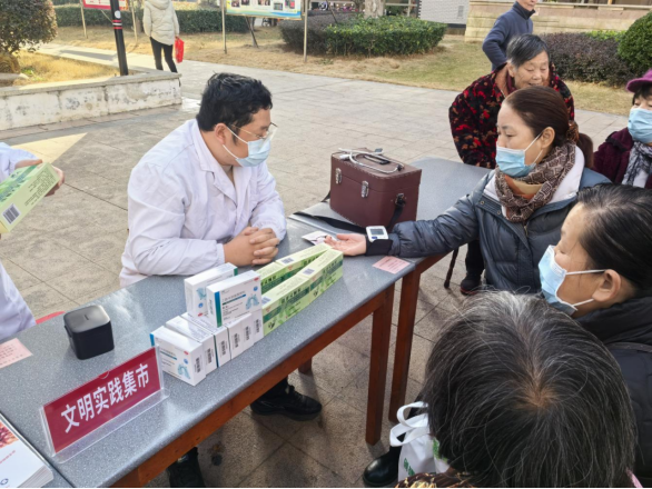 应城市妇幼保健院医护人员细致为老人量血压、查血糖,耐心解答孕期保健、儿童护理疑问;针对近期流感高发态势,医护人员专门讲解预防知识,并向居民免费发放常用药品与健康手册。社区广播循环播报法治要点,让不便到场的居民也能了解内容。