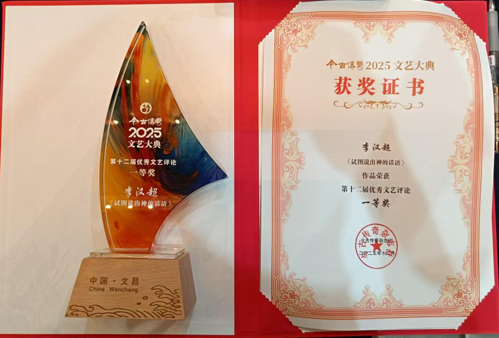 12月6日,记者从今古传奇杂志社"山海同文2025年文艺大典”公布的榜单获悉,应城市作家协会主席李汉超诗评《试图说出神的话语》荣获第十二届优秀文艺评论一等奖,同时荣获该杂志主办的星辰大海全国同题征文大赛一等奖。