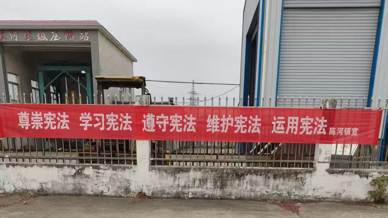陈河镇在该镇政务服务大厅显示屏滚动播放宪法日海报,在镇主干道、集市商圈、村委会等人员密集区域,工作人员悬挂“尊崇宪法 学习宪法 遵守宪法 维护宪法 运用宪法”“建设平安法治应城”等宣传条幅20余条,营造出“抬头见法、低头学法”的浓厚宣传氛围。