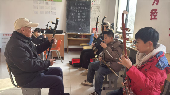 自2021年起,熊尚义老人便主动提出在周末和节假日义务教二胡,风雨无阻。他自备乐器和乐谱,从识谱、握弓等基础教起,用耐心和热情点燃孩子们对传统乐器的兴趣。