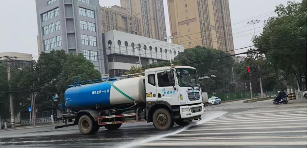该市环境卫生服务中心科学调配作业力量,每天出动洒水车6台、高压清洗车1台、抑尘车1台、雾炮车1台,对长荆大道、广场大道、城南大道、古城大道等重点路段实施循环洒水降尘与喷雾抑尘,确保道路常态保湿。