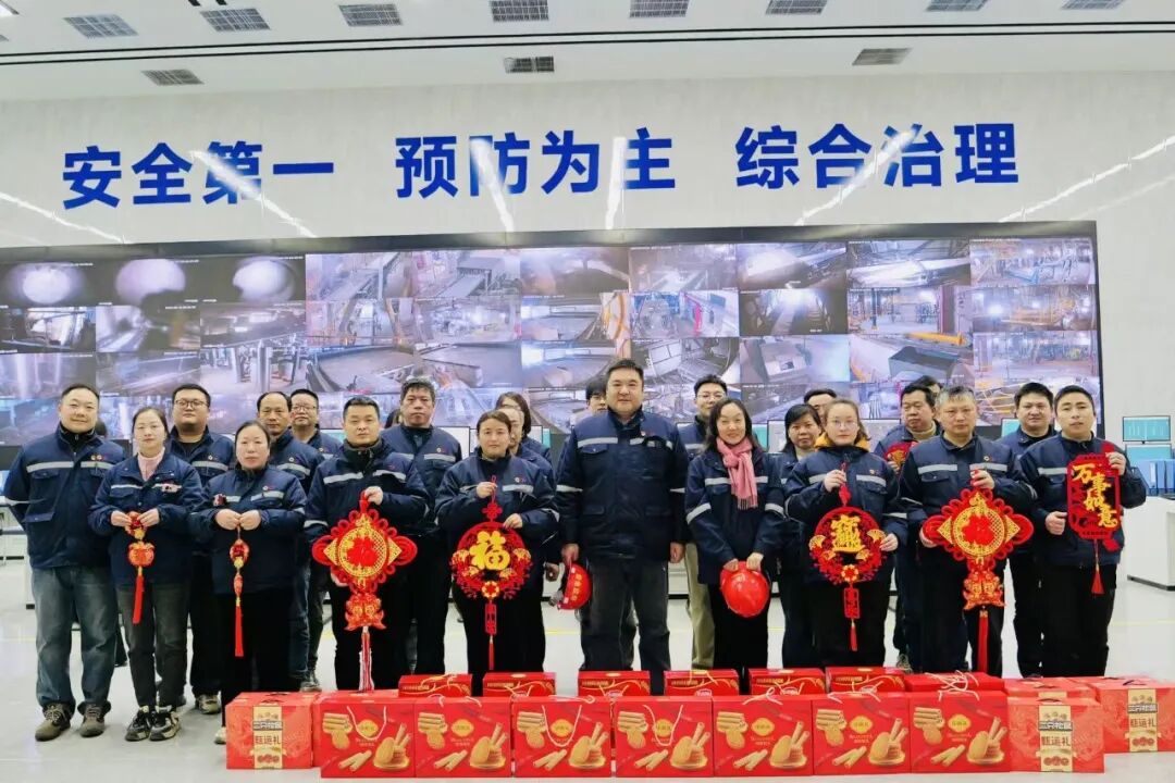 从东门保卫到碱改中控,从制盐中控室到消防队,从碳化中控到热电锅炉……慰问组的脚步走遍厂区。每到一处,领导都与员工亲切作揖:“大家辛苦了!给你们拜年了!”