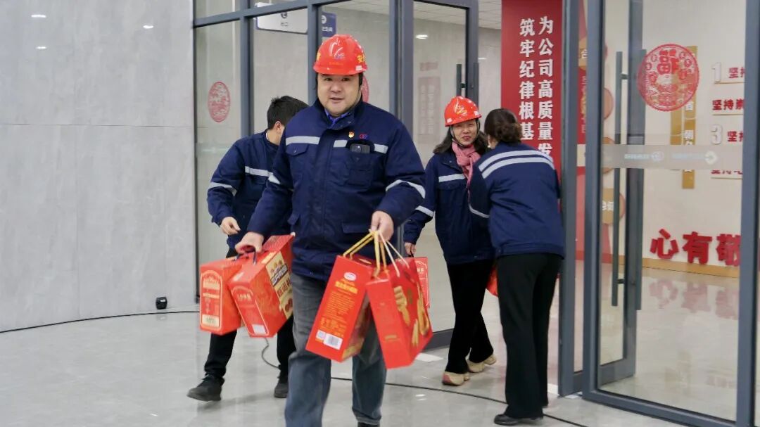 与此同时,另一组慰问人员也出发了。他们到储运事业部和宏宜公司,把慰问品送到门岗、车间、调度室、中控室——确保每一份关怀,都不缺席。