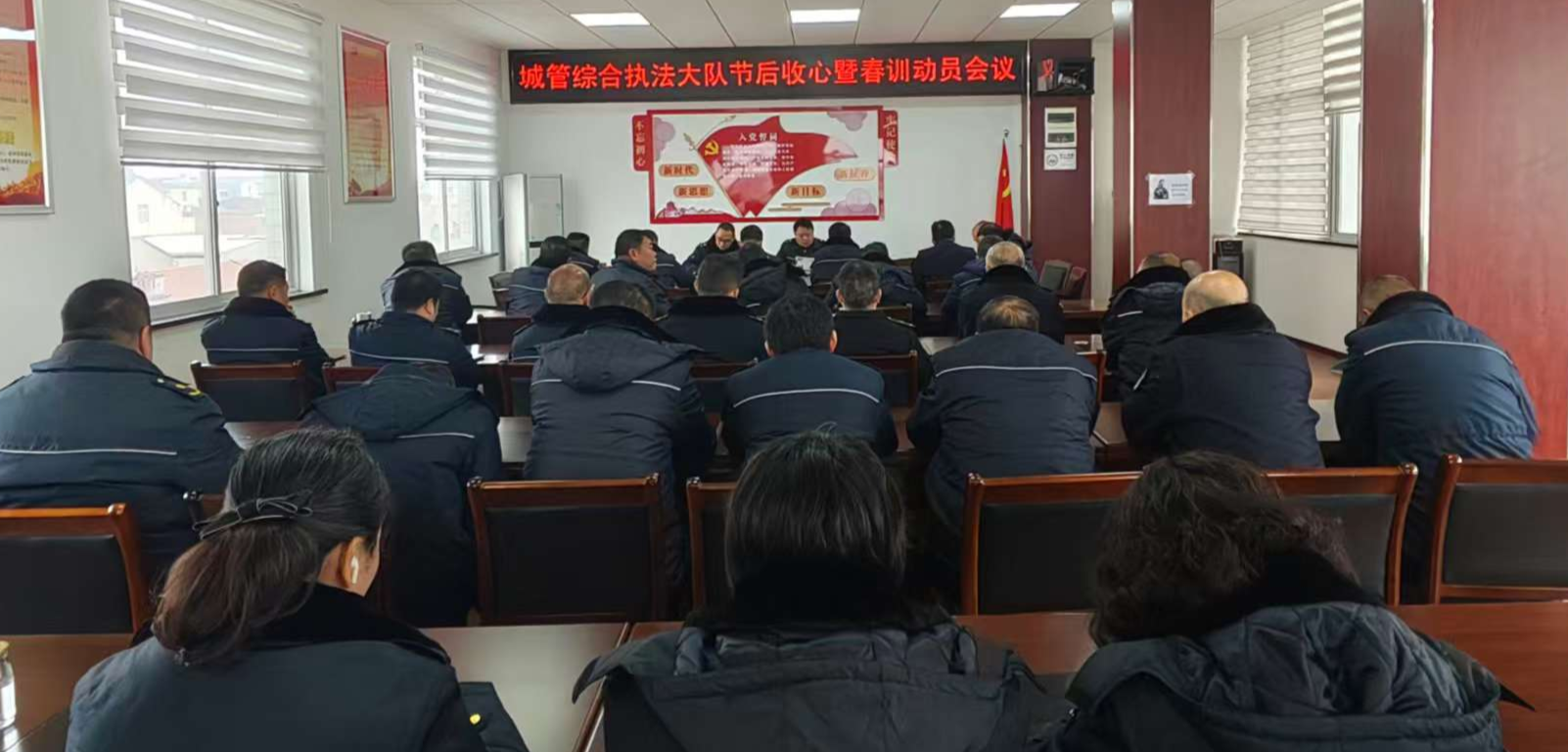 2月24日,应城市城市管理综合执法大队举行节后收心暨春训动员会议。会议要求全体队员迅速从“节日状态”切换到“工作状态”,克服“节后综合症”,确保人员在岗在位在状态,以饱满热情投入新一年工作。
