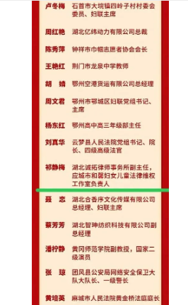 3月6日,湖北省“三八”红旗手表彰名单出炉,孝感市第七届人大代表、应城市湖北诚拓律师事务所副主任、应城市和馨妇女儿童法律维权工作室负责人祁静梅被授予湖北三八红旗手称号。