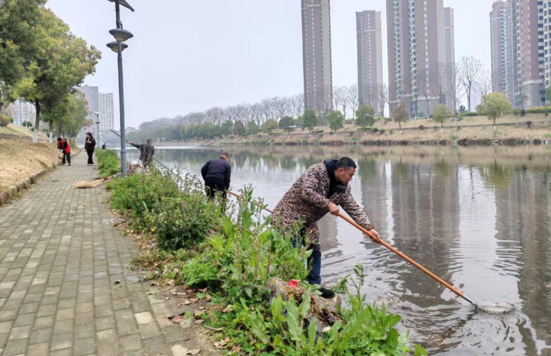 3月25日,应城市城中街道碾屋社区组织工作人员、志愿者,对老县河(千佛庵段面)漂浮物进行集中清理,为初春老县河“梳洗美容”。