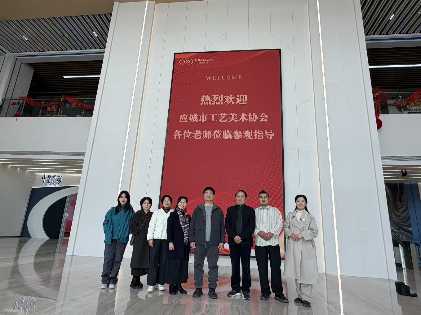 图为应城市工艺美术协会会员与美欣达副总裁鲍凤娇合影(左起第七位为鲍凤娇)