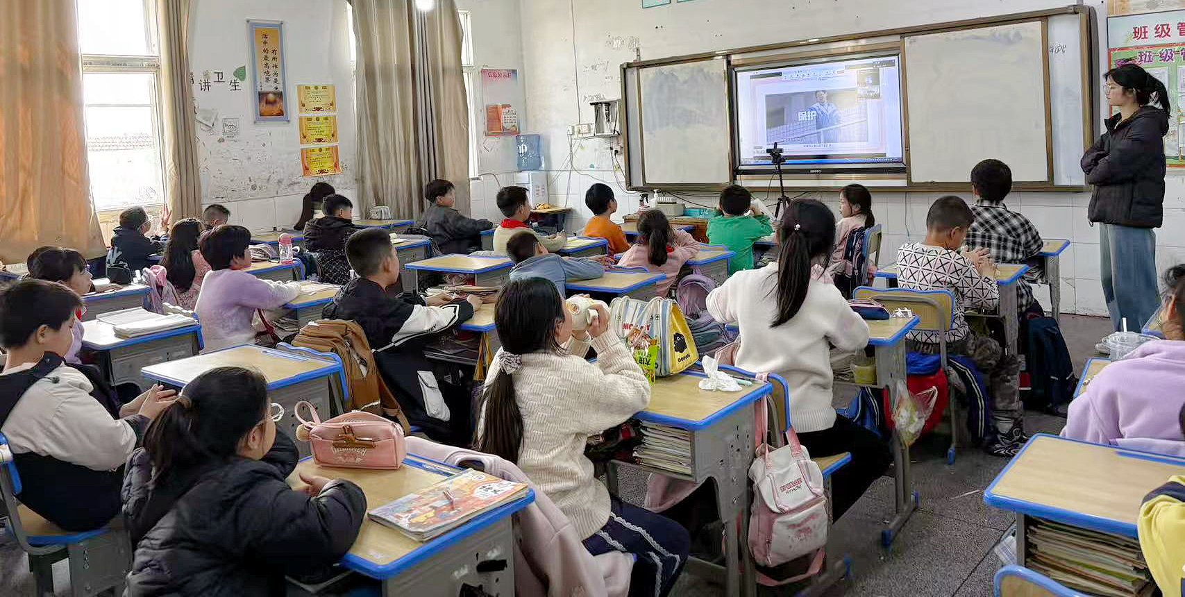 作为项目落地的关键支撑,华韵心文化志愿服务队承担了课堂联络、设备调试及教学反馈等保障工作。为确保线上教学不流于形式,每堂课不仅有主讲教师线上授课,还由本校老师配合线下巡堂辅导。“我们希望通过持续性的陪伴,让乡村教育的‘数字短板’变成‘跳板’。”