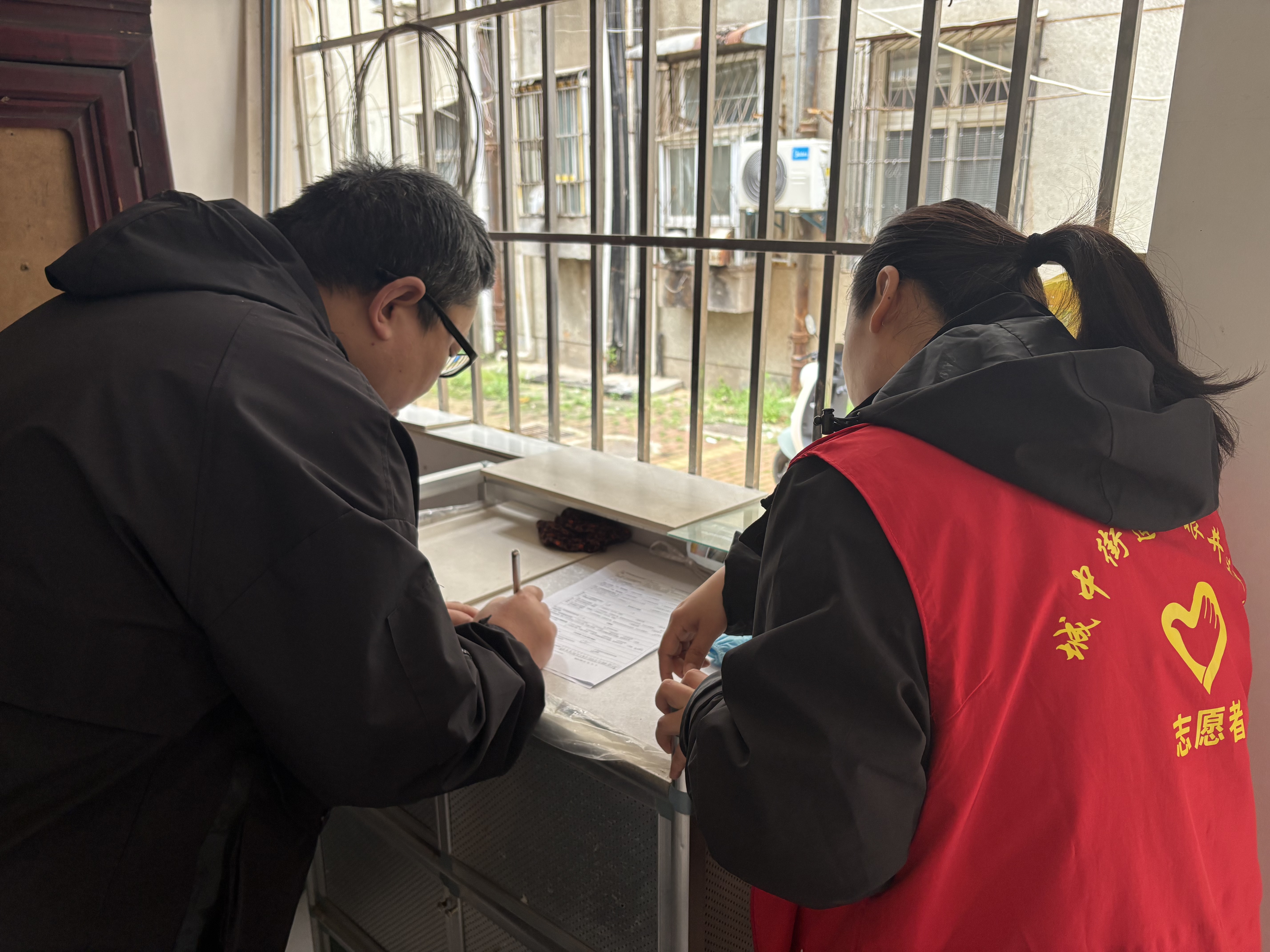在应城市城中街道三眼井社区,志愿者逐户对接残疾人家庭,仔细核对身份信息、生活状况等核心内容,同步收集医疗保障、就业帮扶等需求信息,详细填写档案资料。