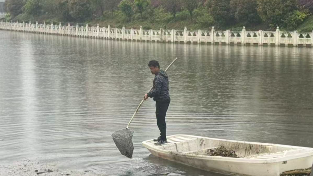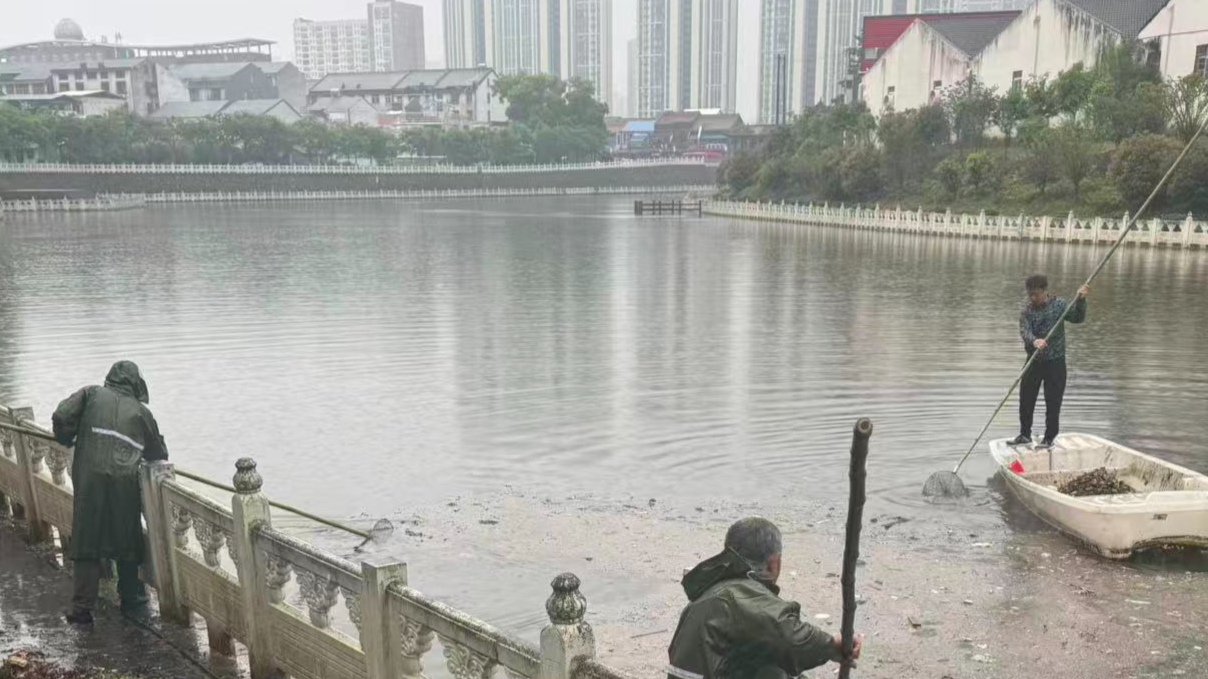 经过数小时紧张作业,老县河水面漂浮垃圾基本清理完毕,河道恢复整洁。