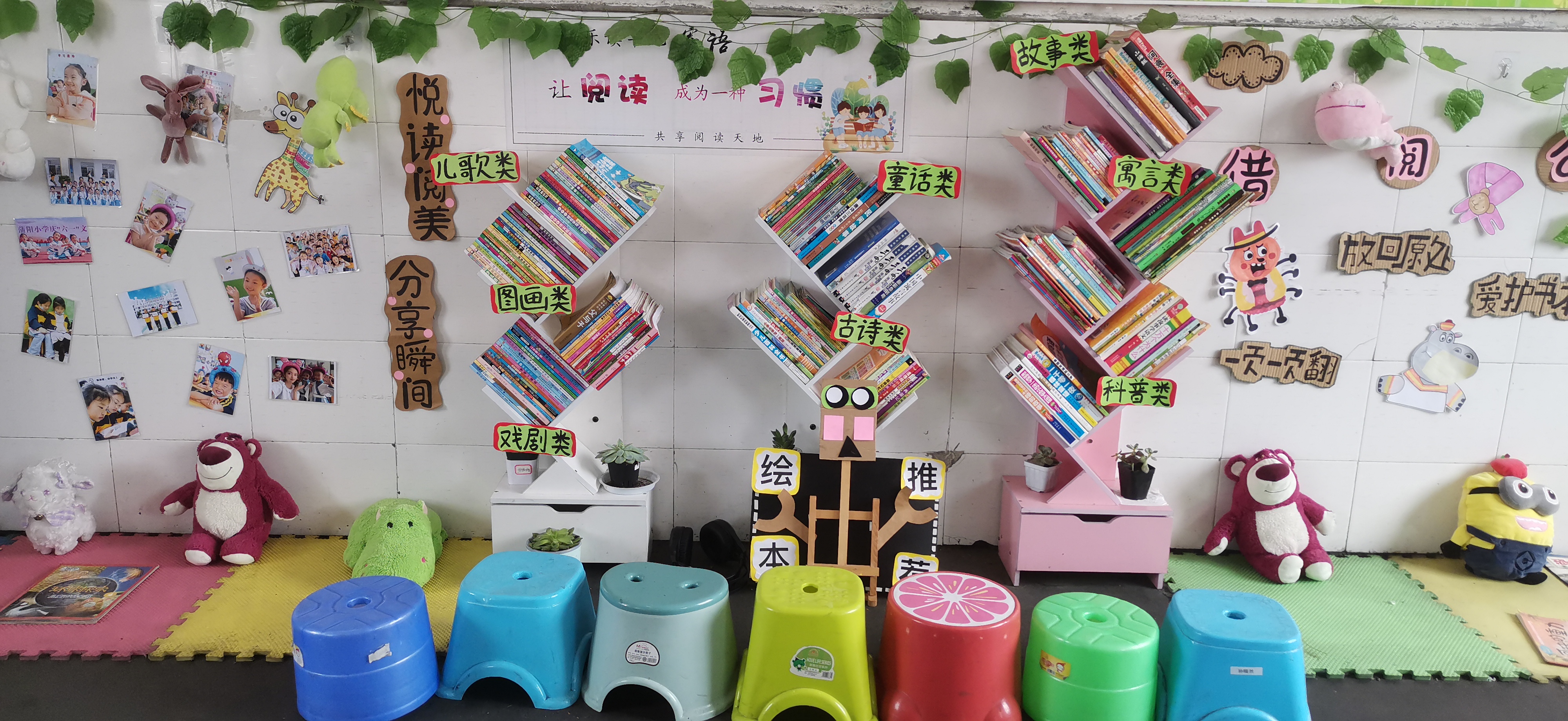 干净整洁的教室里,孩子们发挥自己的奇思妙想。合理的布局、精美的饰品点缀、温馨的读书氛围,让孩子们的梦想插上了翅膀。