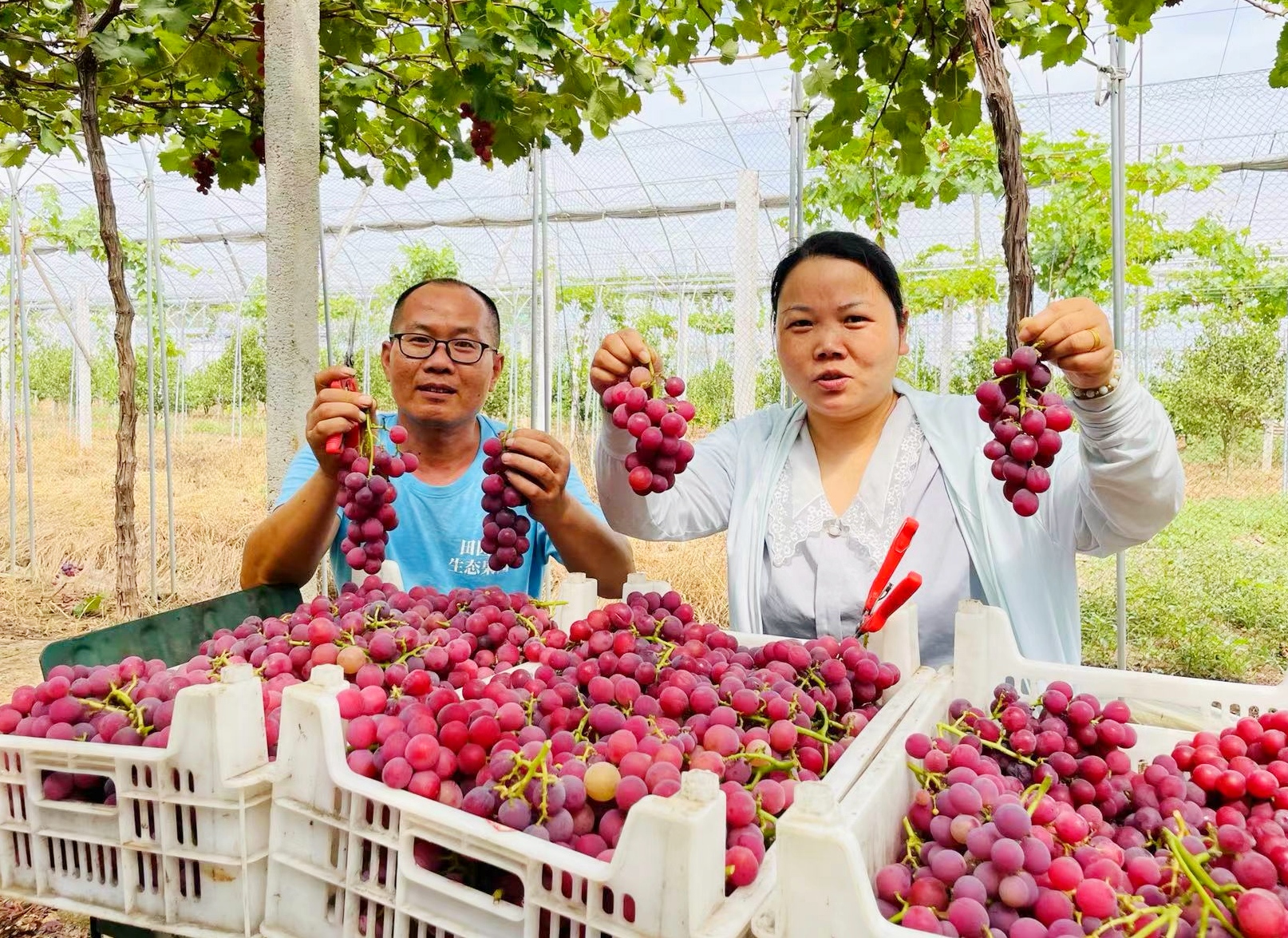 田园乐采摘园种有浦江巨峰、巨玫瑰、白罗莎、阳光玫瑰、甜蜜蓝宝石等多个葡萄品种和红心火龙果,主要通过应城优选平台、网络直播、线下批发、店铺零售、现场采摘,今年预计收入50万余元。