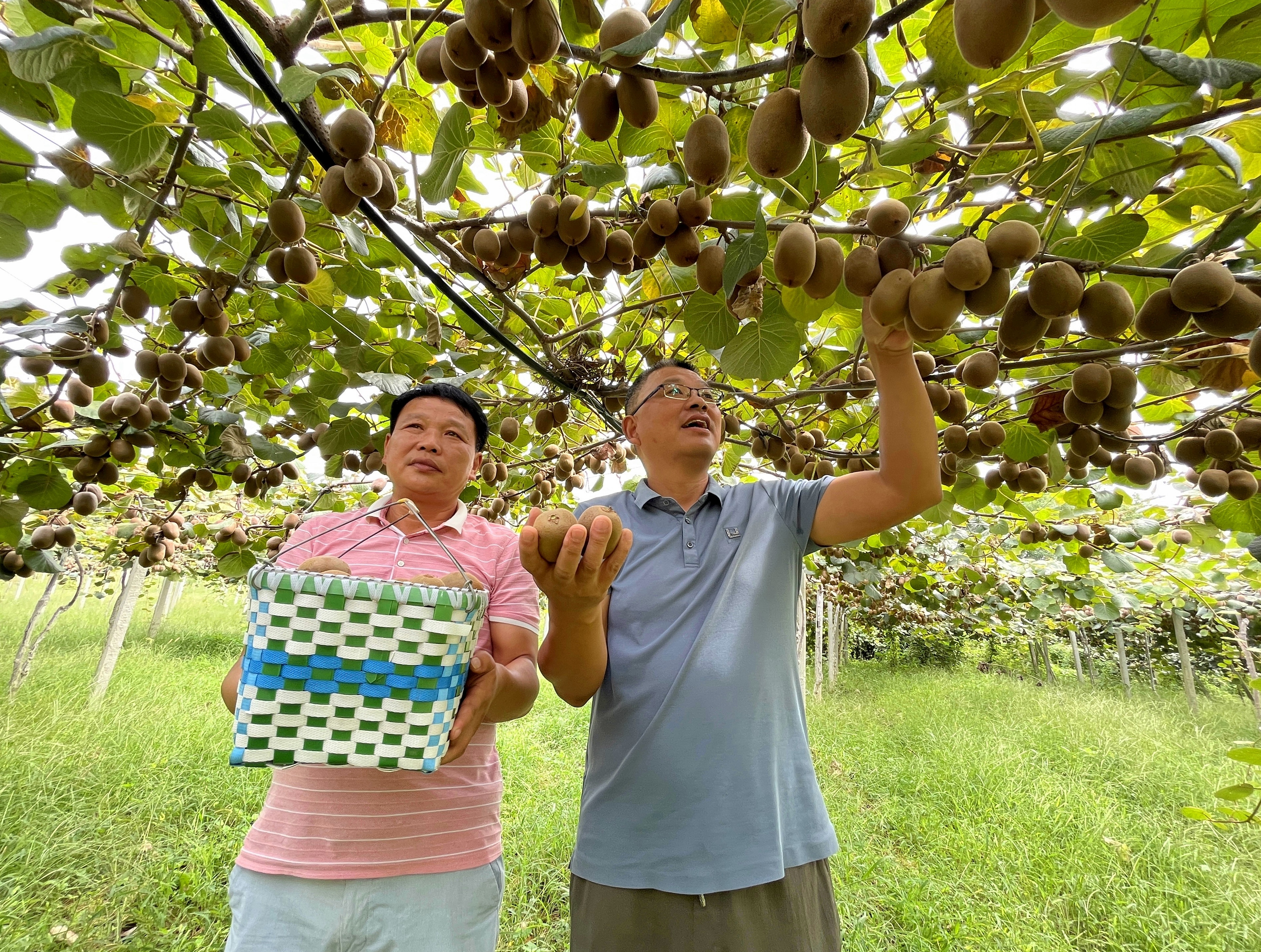 据了解,2019年,该基地从新西兰引进猕猴桃种苗,并利用村里荒废的土地试种了几亩,初见成效后,便分树苗扩种。到2022年9月,猕猴桃的种植面积达40余亩,目前已投产30余亩,今年猕猴桃丰收,预计可产猕猴桃9万多斤。