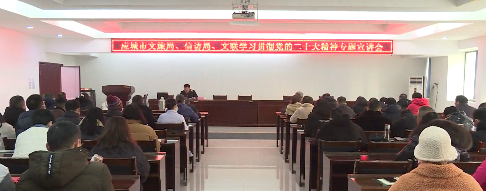 为认真学习宣传贯彻党的二十大精神,元月4日,应城市文旅局、应城市信访局、应城市文联共同开展学习贯彻党的二十大精神专题宣讲,应城市委宣讲团成员、应城市文旅局党组书记、局长付立军作宣讲报告。