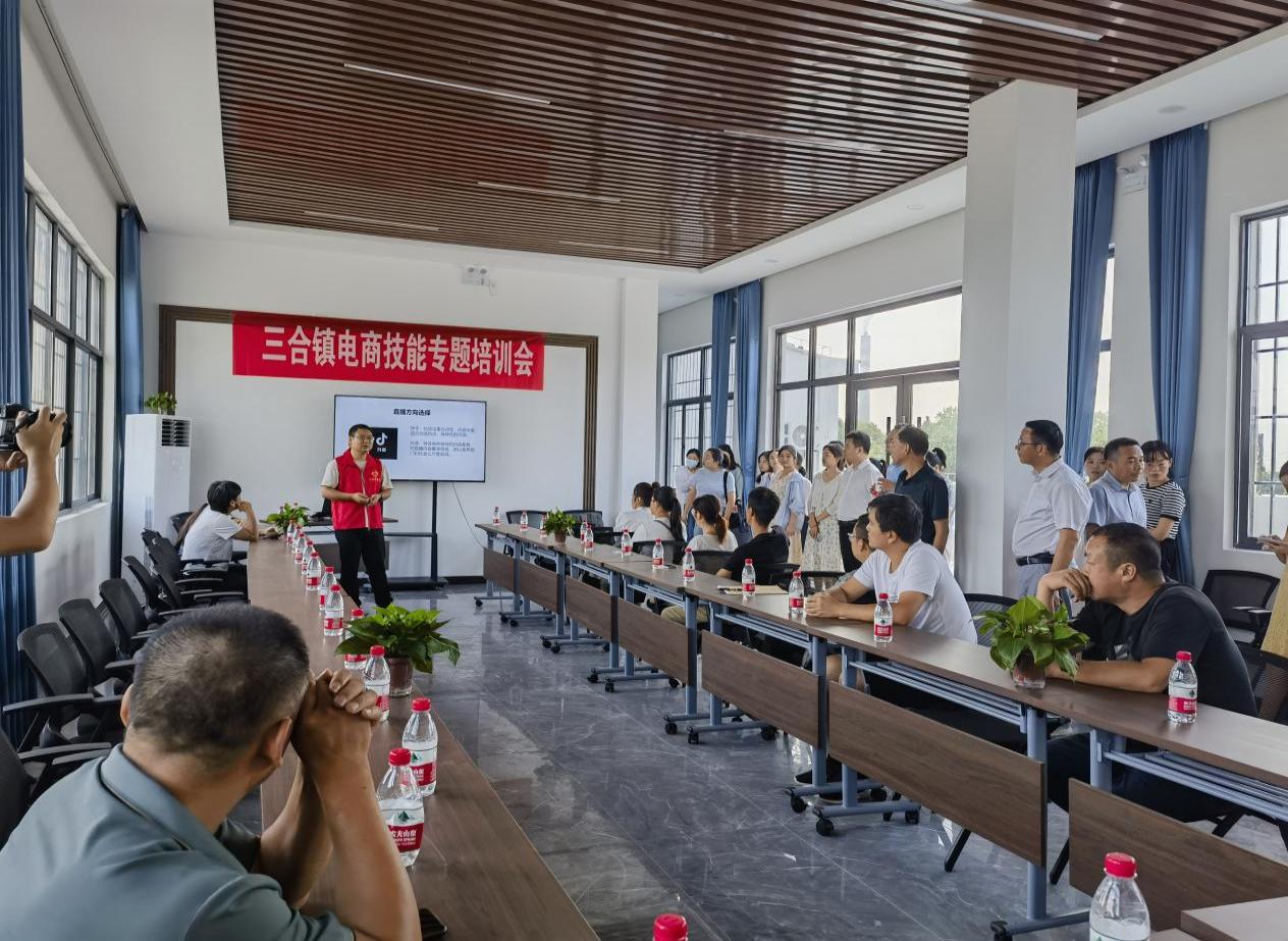 应城市三合镇三结村新时代文明实践站开展电商培训活动现场