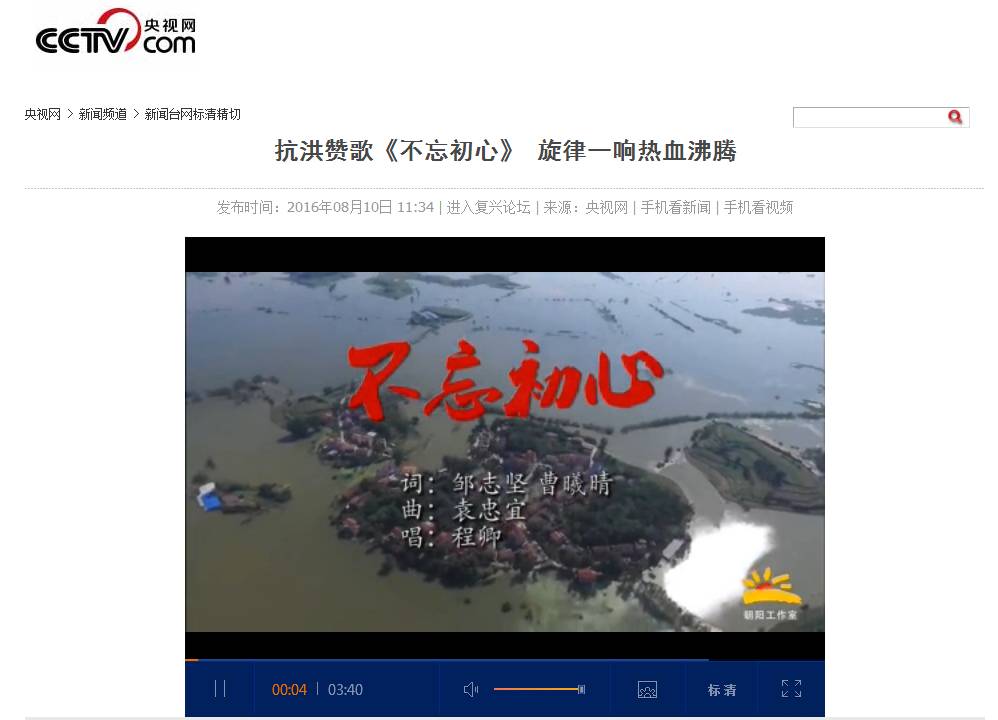 据不完全统计,在过去的24小时内,该视频在各大网站上的点击量已经突破6800万!仅腾讯视频点击量就突破1800万!从人气官微,到主流媒体网站,从各大都市报的微博微信,到自媒体玩家,最振奋人心的抗洪赞歌《不忘初心》成为他们相继传颂的最热话题!