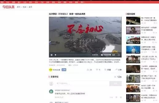 新浪视频率先将歌曲推上了首页热门。中国军网发布相关评论。央视网、新华网、凤凰视频、今日头条、爱奇艺、腾讯视频、酷六视频等视频网站也纷纷上线。