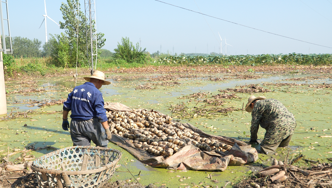 连日来,天鹅镇万亩莲藕基地喜获丰收,莲藕种植大户们正在采挖莲藕,到处呈现出一派繁忙的劳动景象。