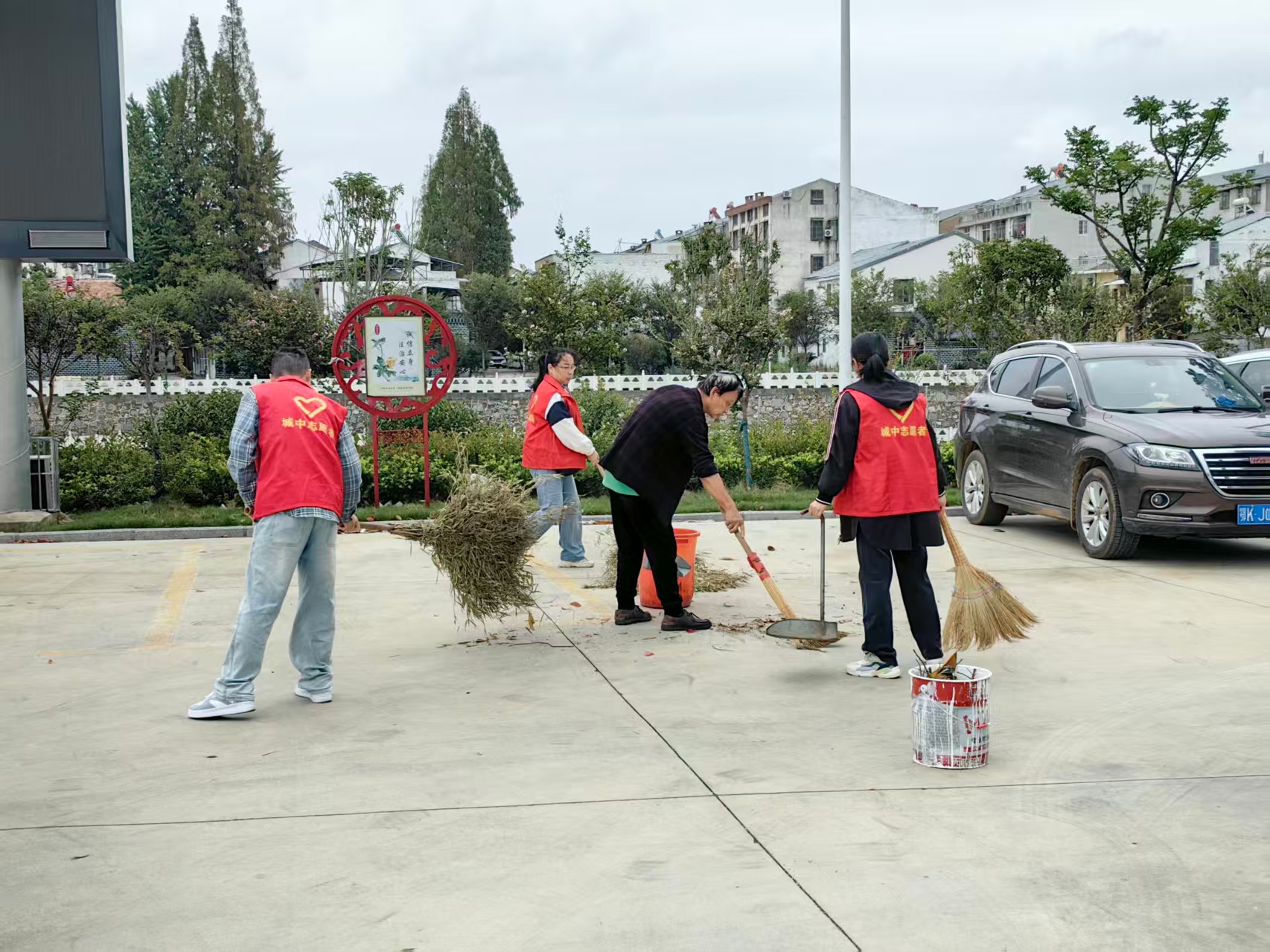 社区工作人员明确分工,认真清理广场内落叶、烟头、白色垃圾,对健身苑角落堆积的杂物彻底清运。志愿者们还向过往居民宣传文明环保理念,呼吁共同维护社区环境。