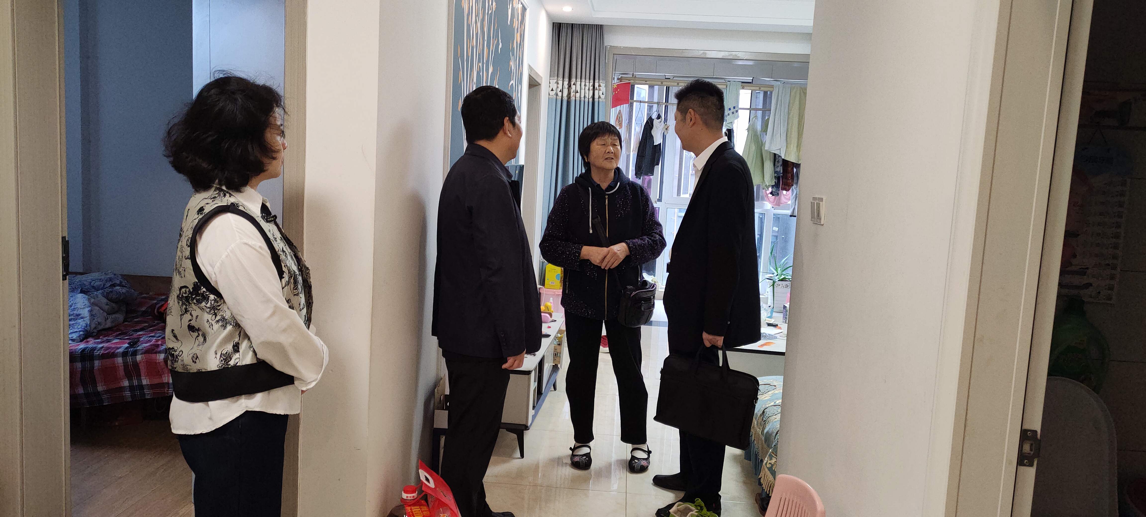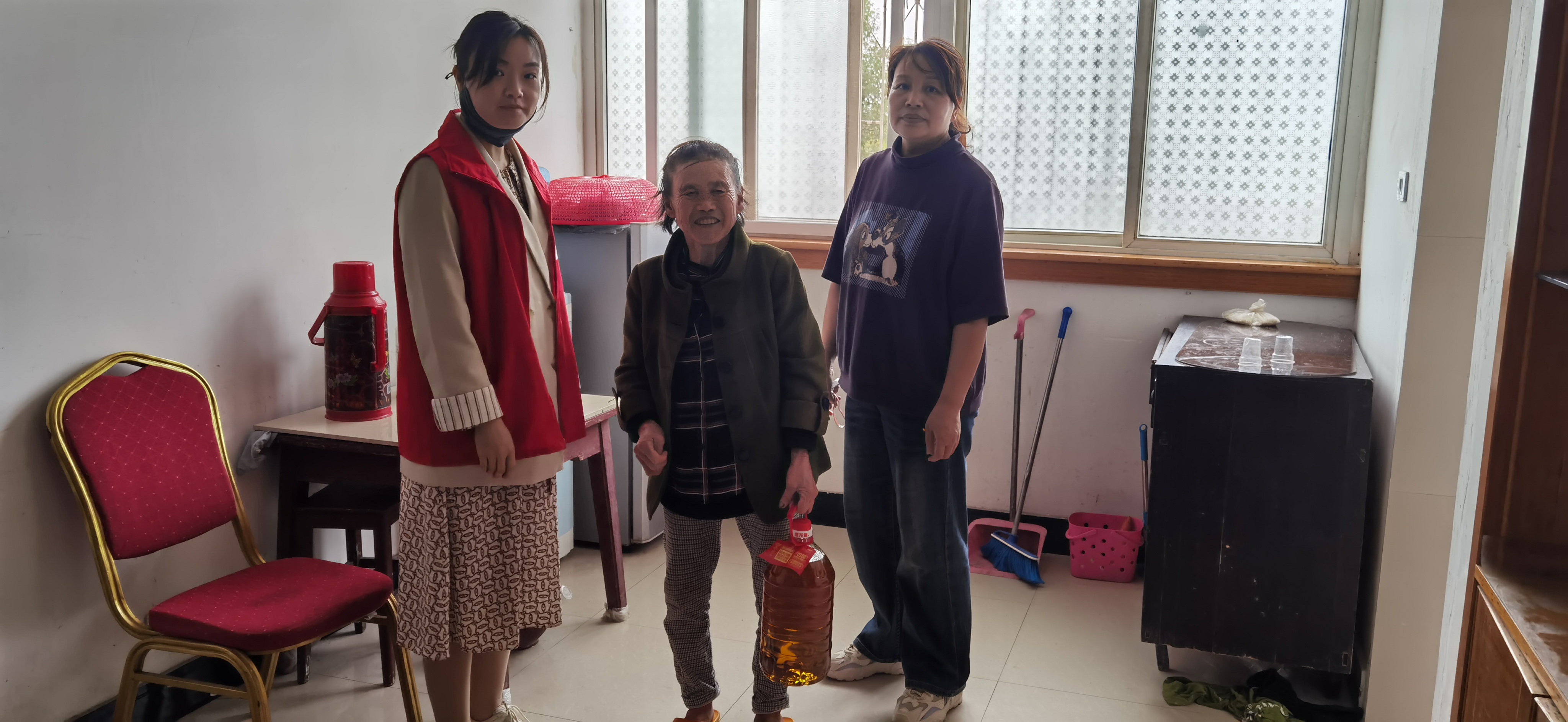 工作人员走进慰问对象家中,详细询问他们的生活近况、实际需求,耐心倾听心声,送上大米、食用油等生活物资,叮嘱他们注意身体,并致以节日祝福。